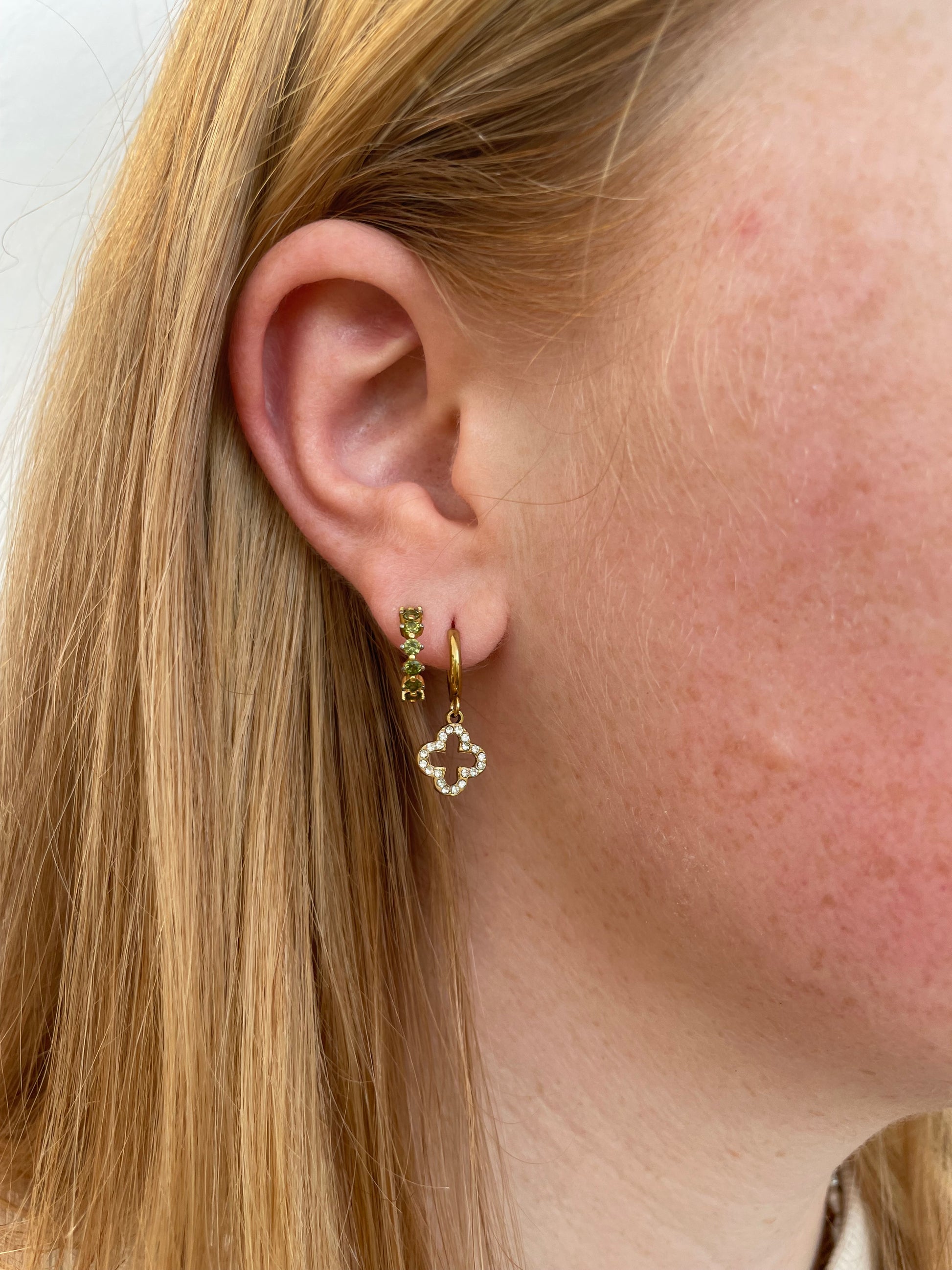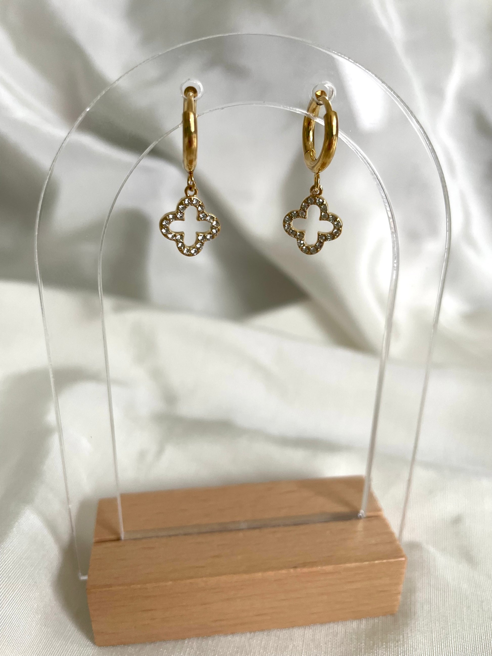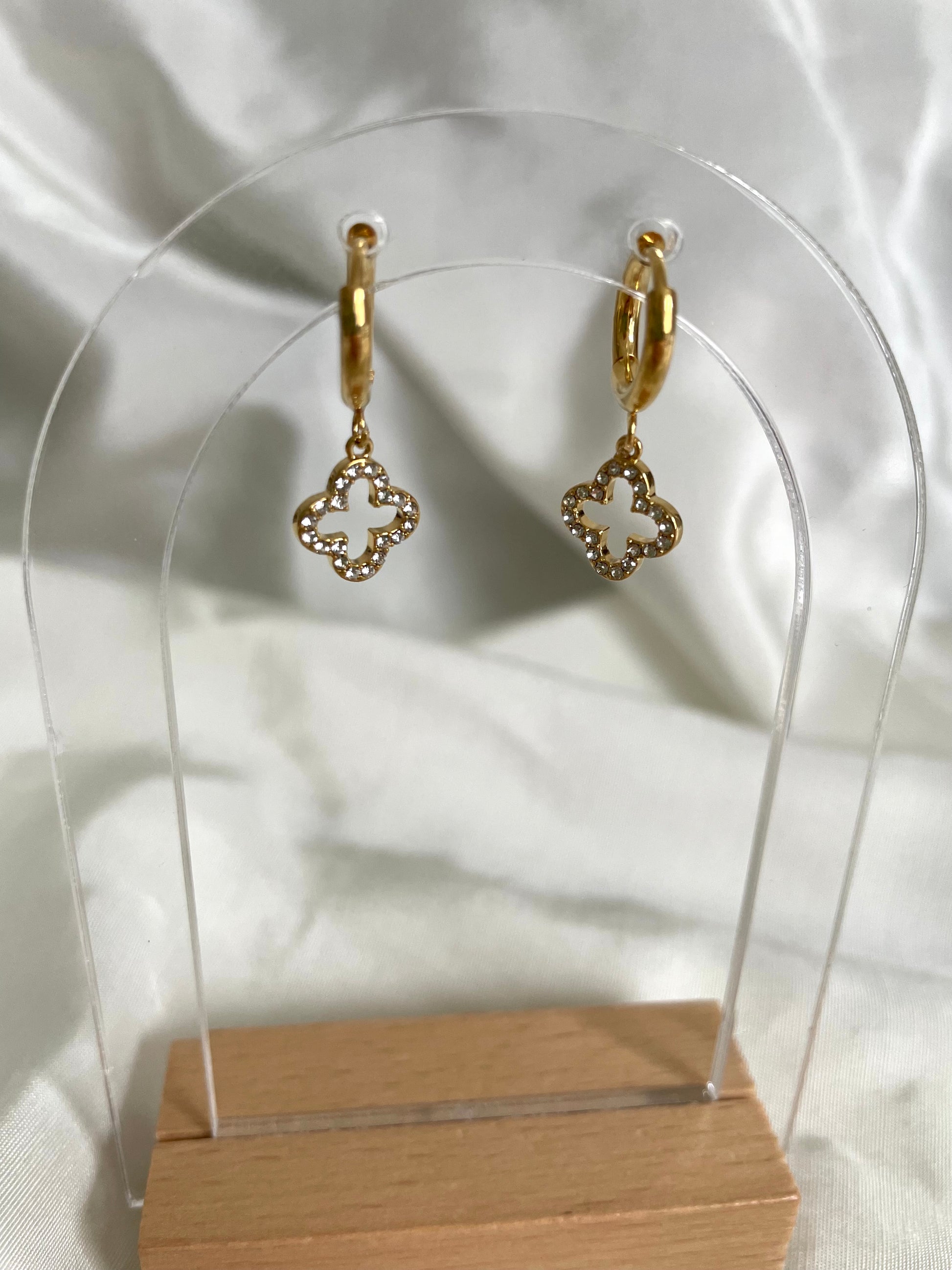 Die Ohrringe sind aus einer Creole mit einem schönen Glitzer Kleeblatt Anhänger.