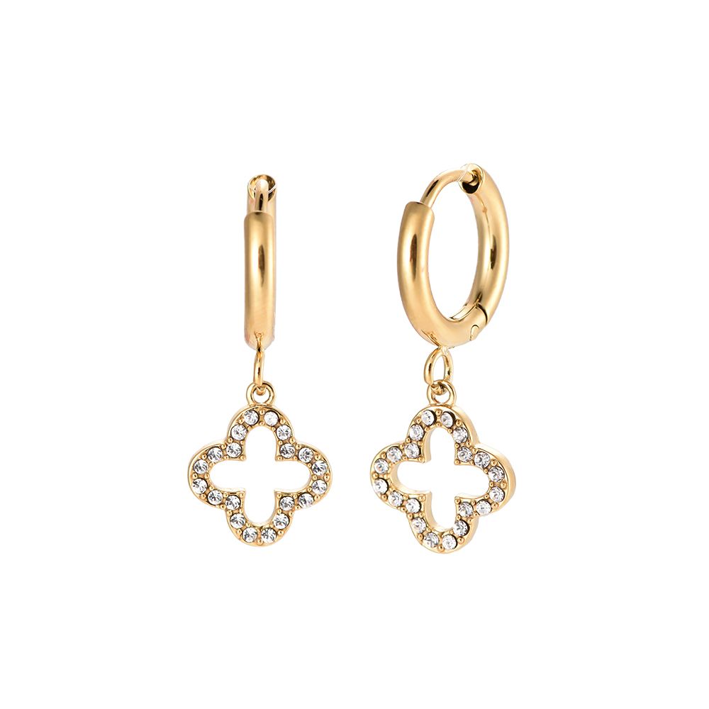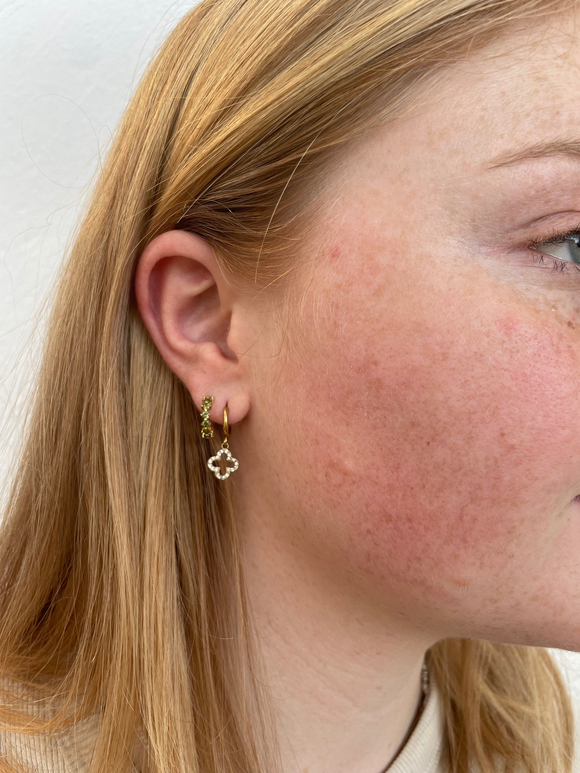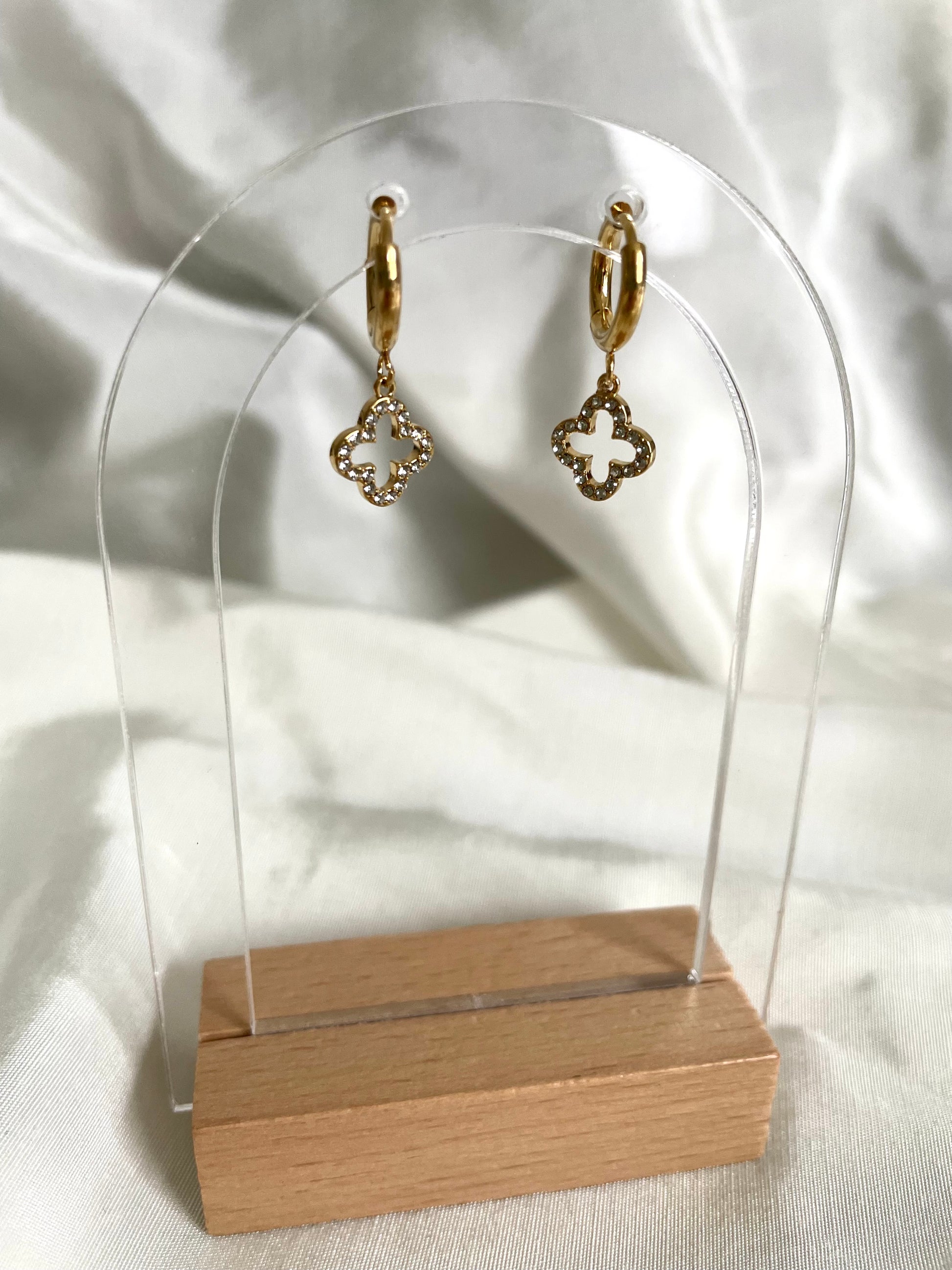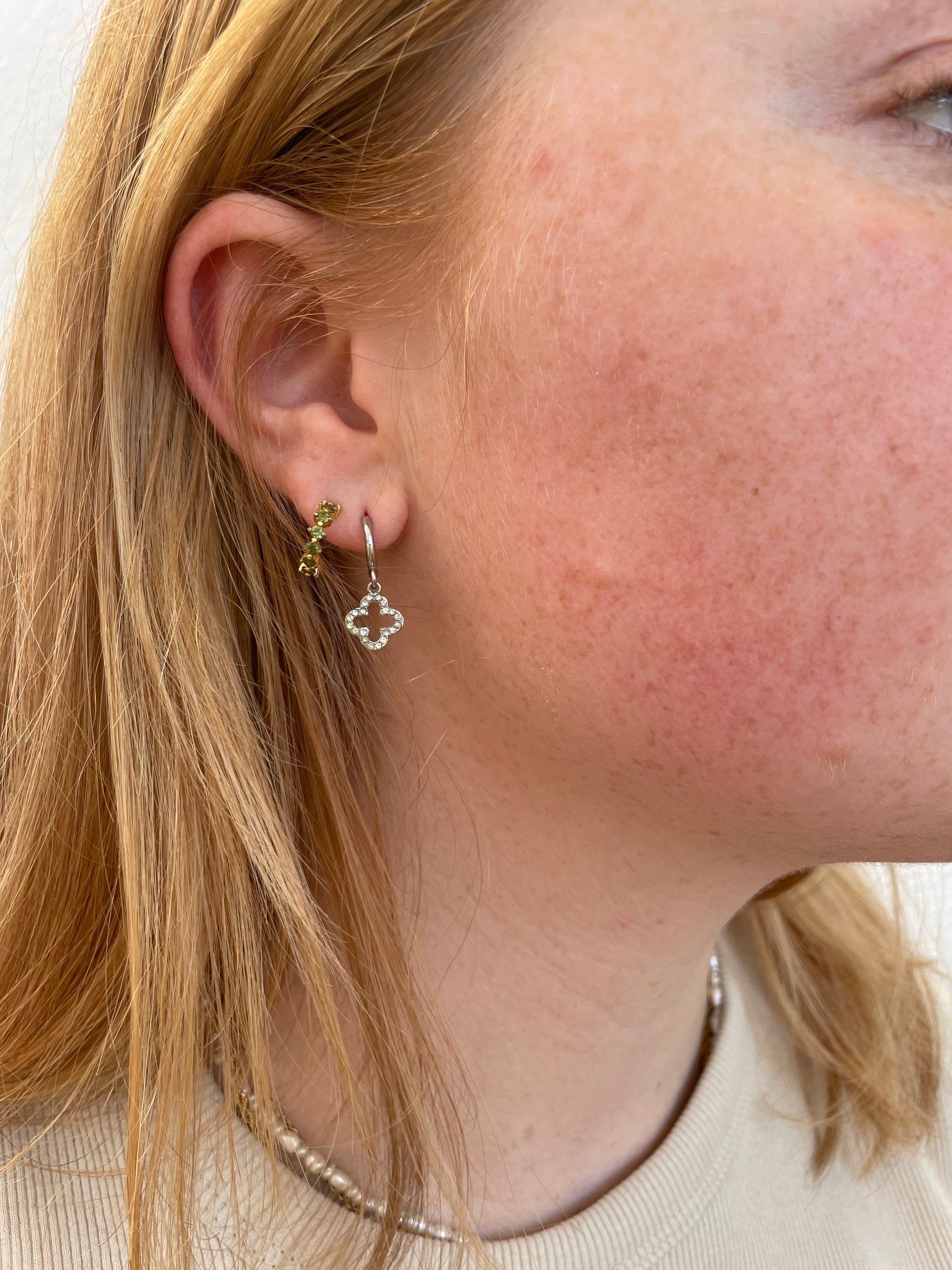 Die Ohrringe sind aus einer Creole mit einem schönen Glitzer Kleeblatt Anhänger.