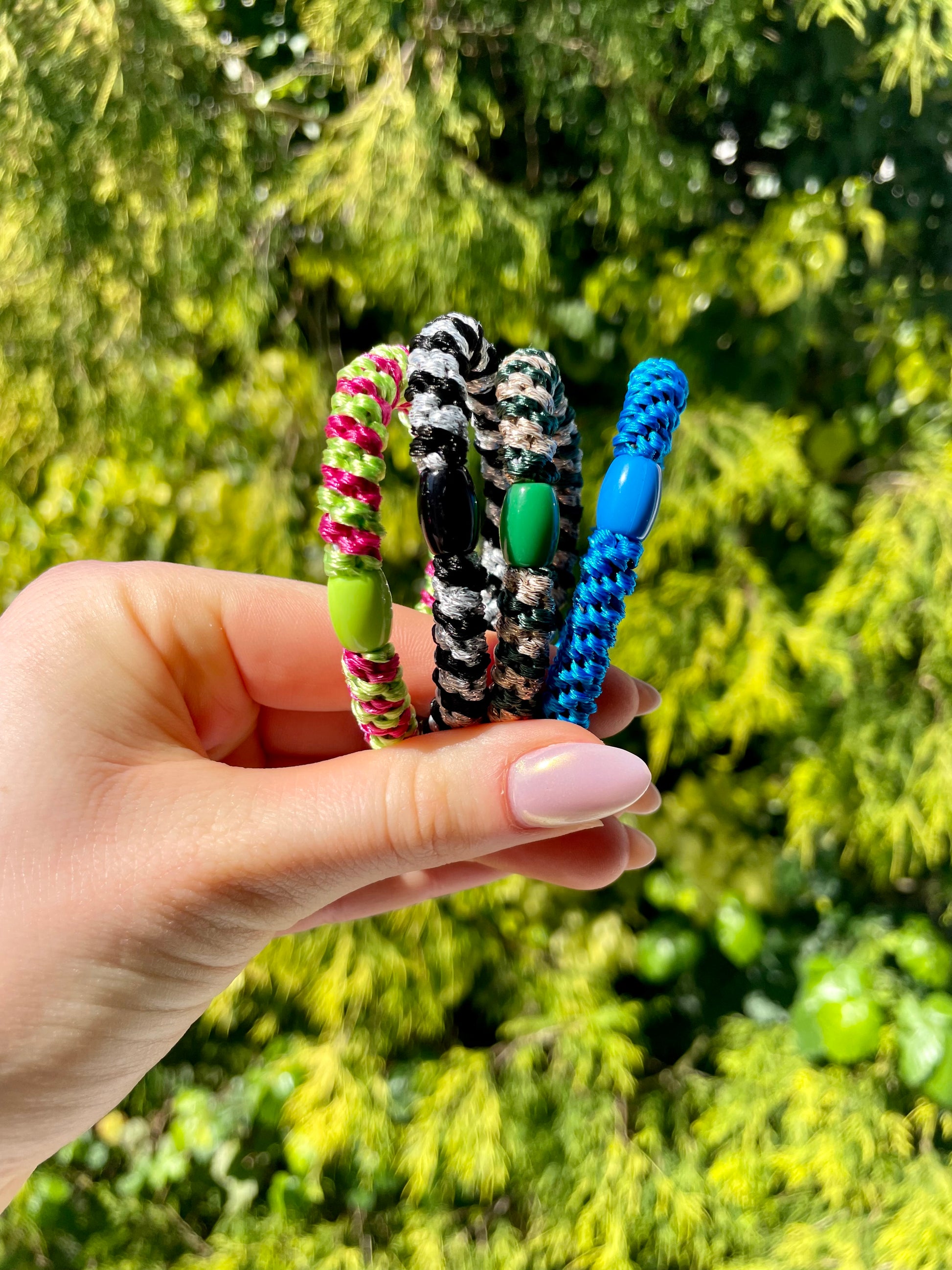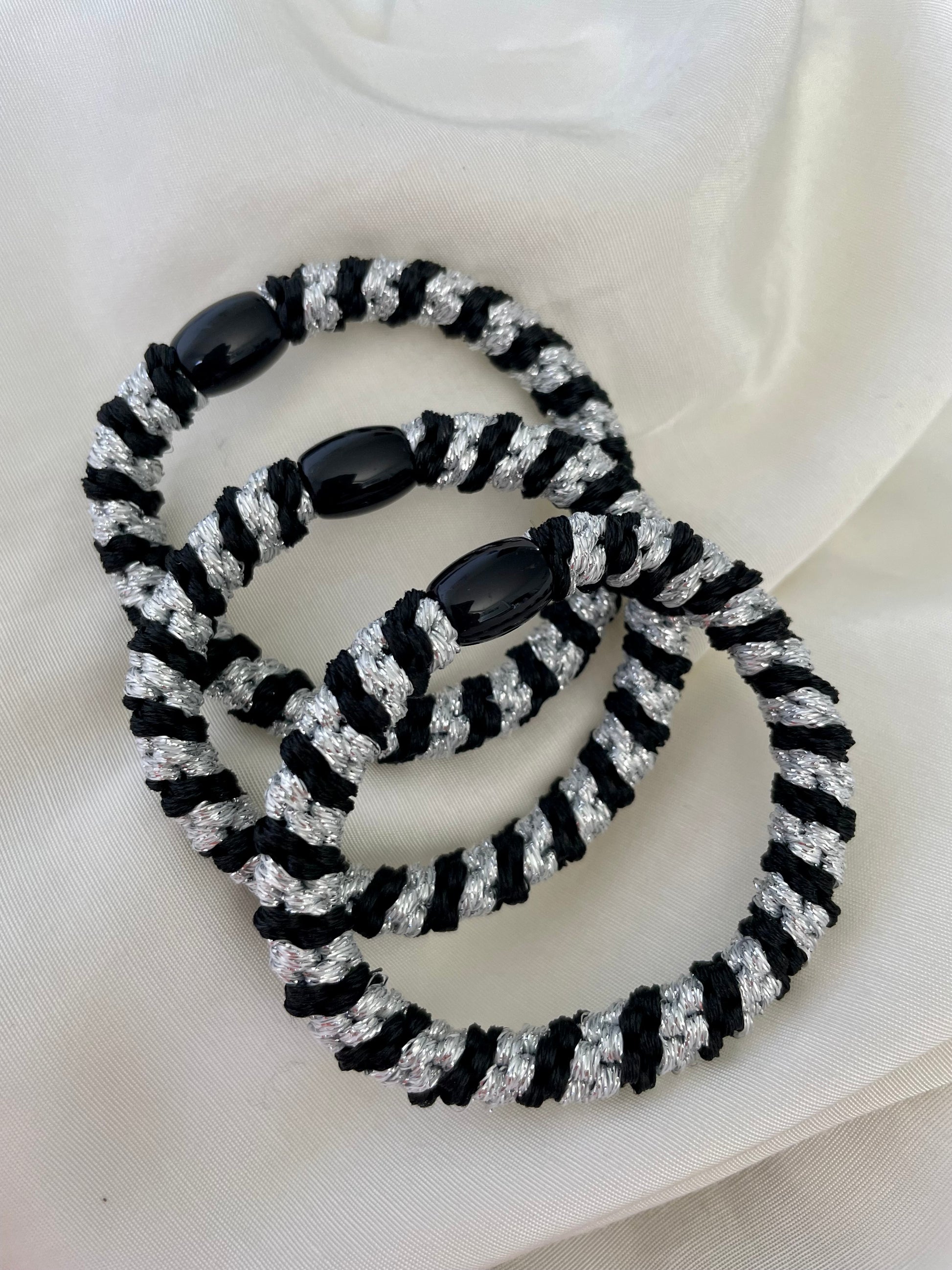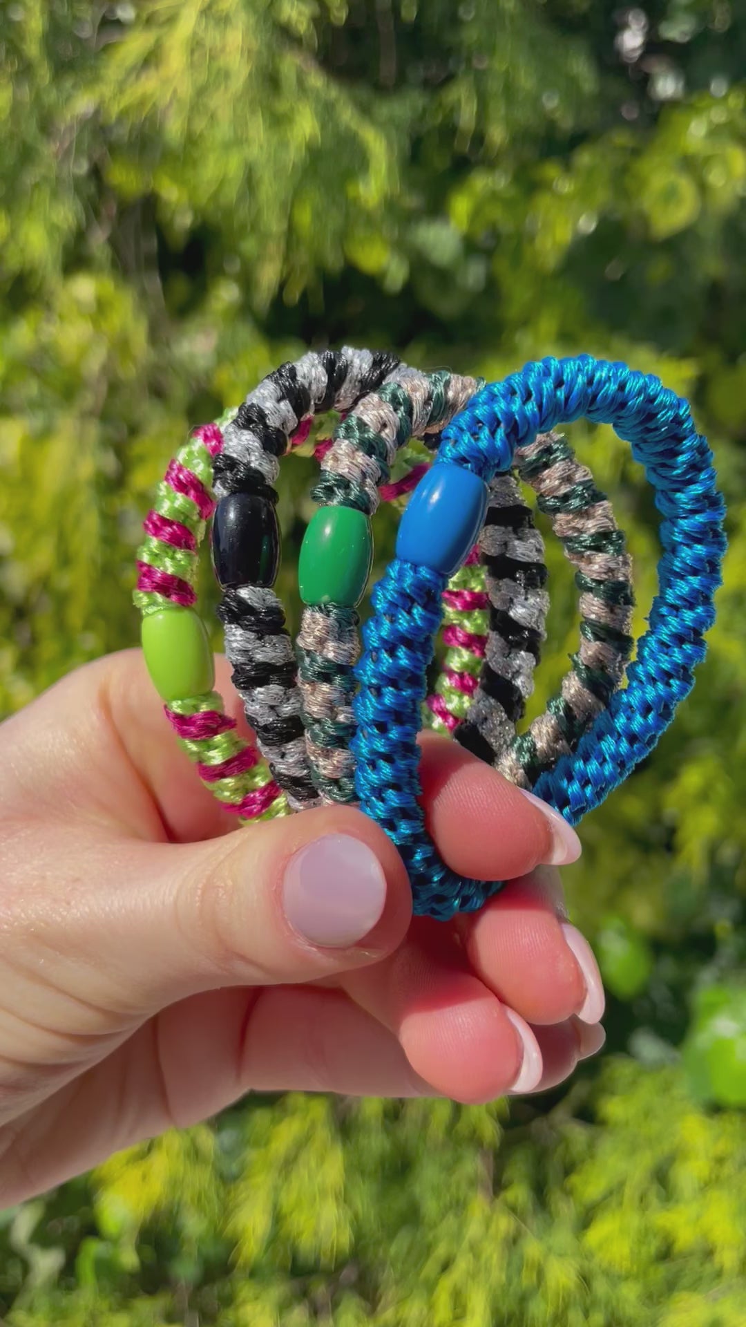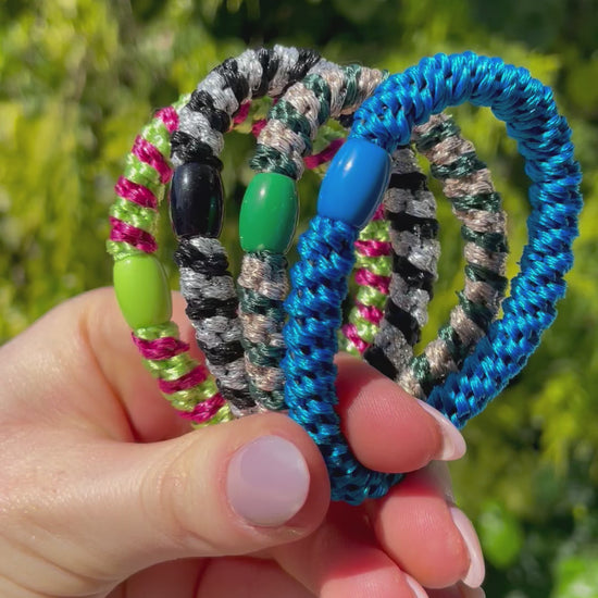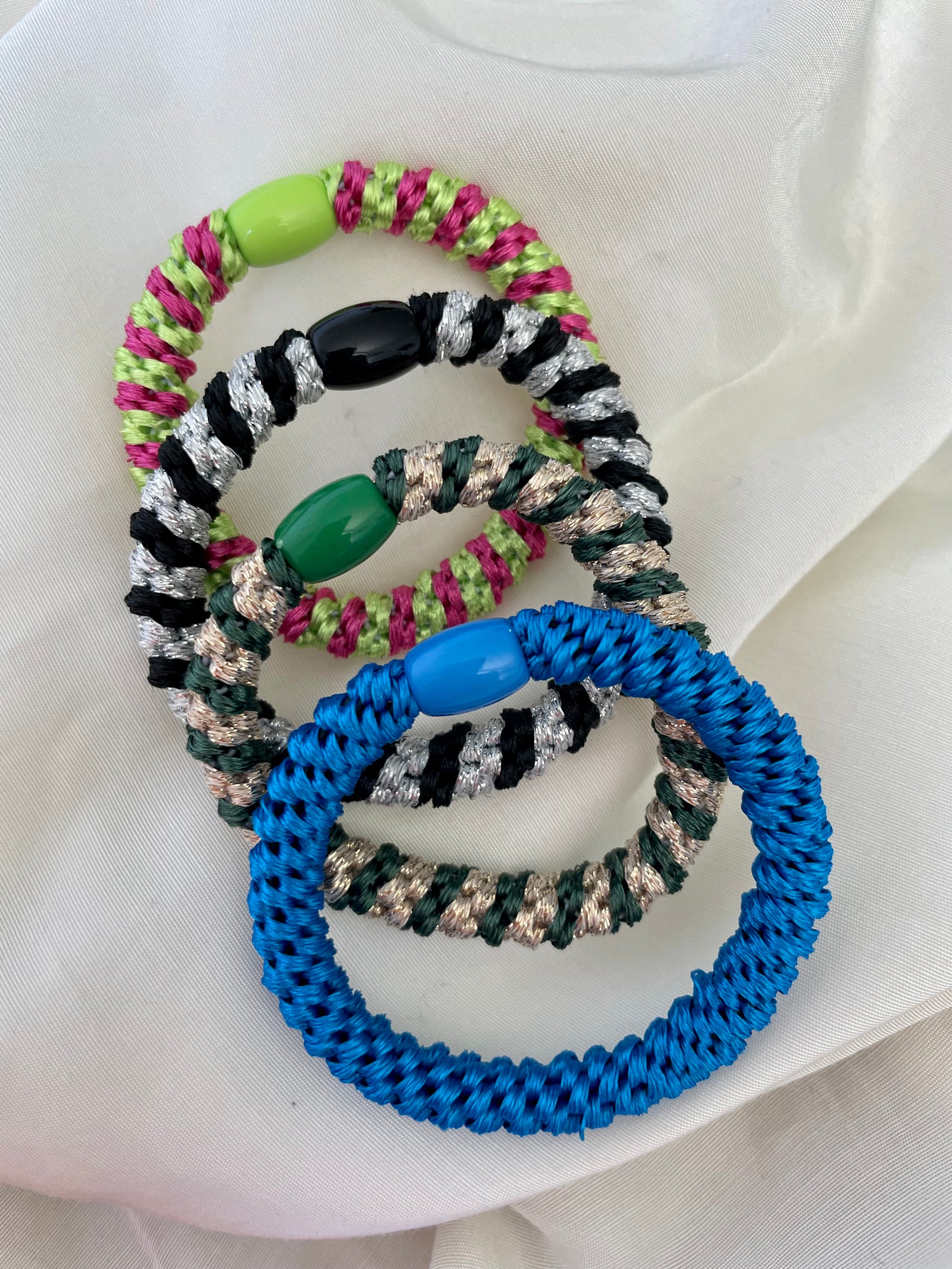 Hier seht ihr mein wunderschönes Haargummi Set Happy. Ein Set enthält 4 Haargummis. Ihr könnte für Haargummis aber auch einzeln erwerben. Besonders geeignet sind diese Haargummis für festes und dickes Haar, können aber auch genauso gut bei allen andern Haaren benutzt werden. Das Haargummi ist circa 1cm dick.