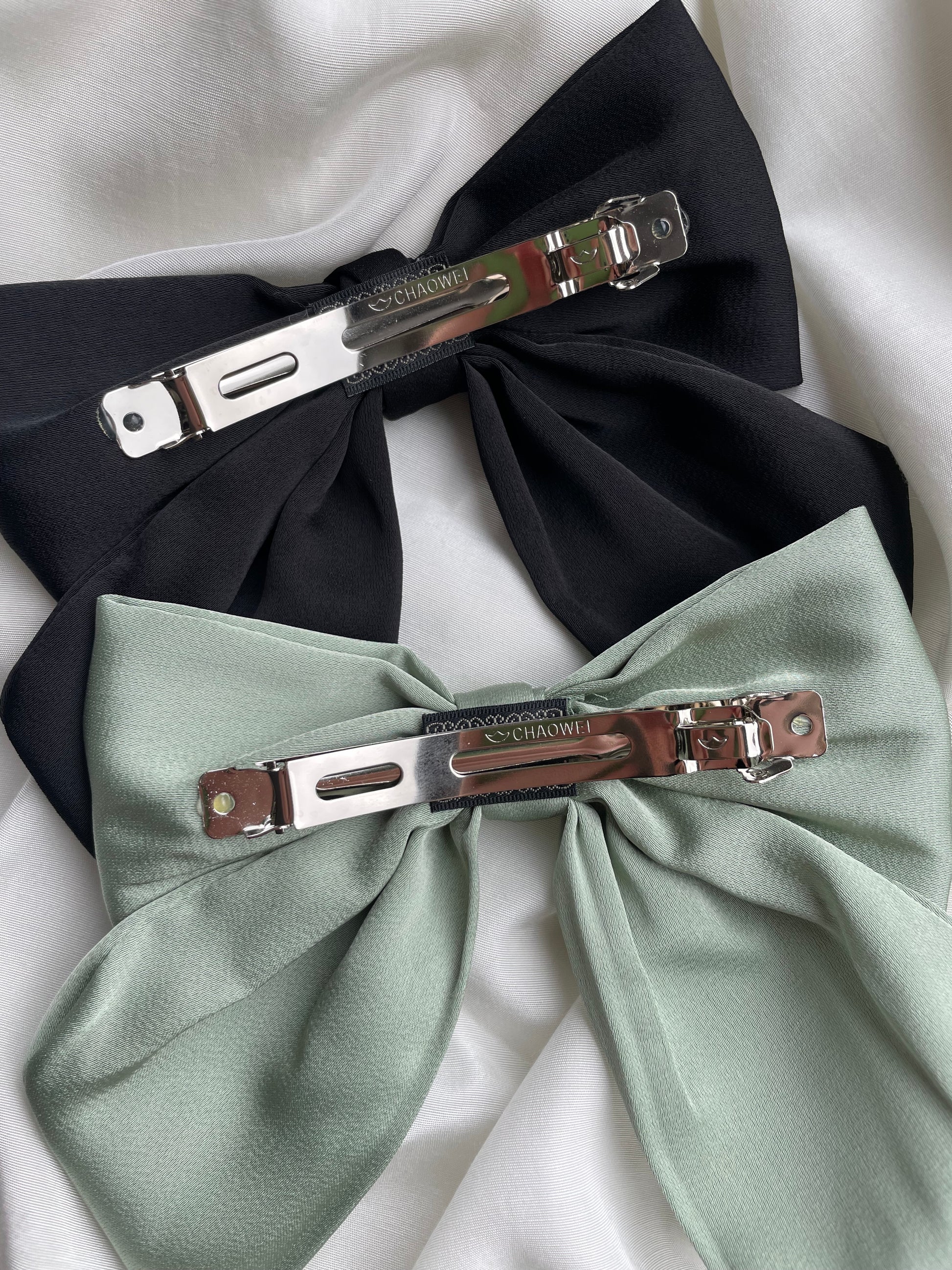 Die Schleifen sind aus Satin und haben einen eingearbeiteten Haarclip, sodass du dir einfach ein paar Haarsträhnen nehmen kannst und sie Einklippen kannst.