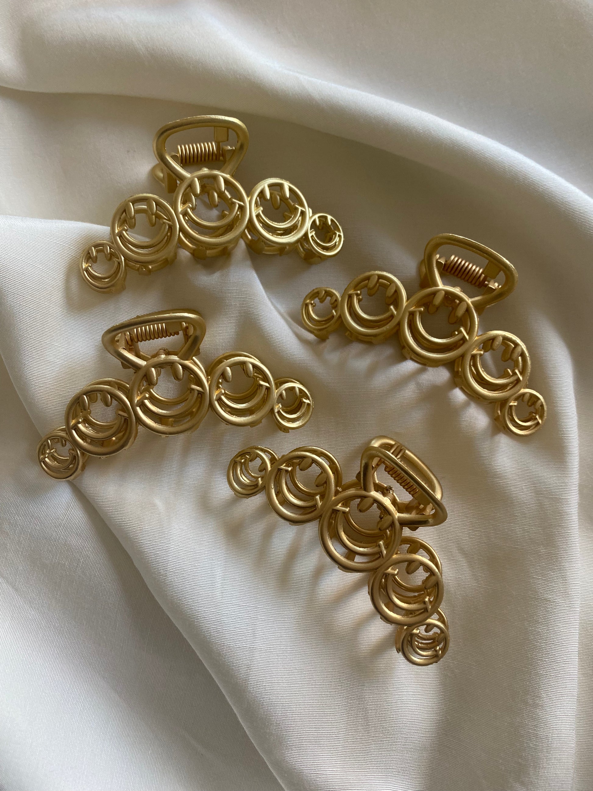 Verleihe deinem Look einen lässigen Touch mit unserer mittelgroßen Haarspange in Gold aus Smileys. Kein Grund mehr, schlecht gelaunt auszusehen - lasse dein Inneres Strahlen und rocke diesen trendigen Haarschmuck. Smiley sind immer im Trend!!