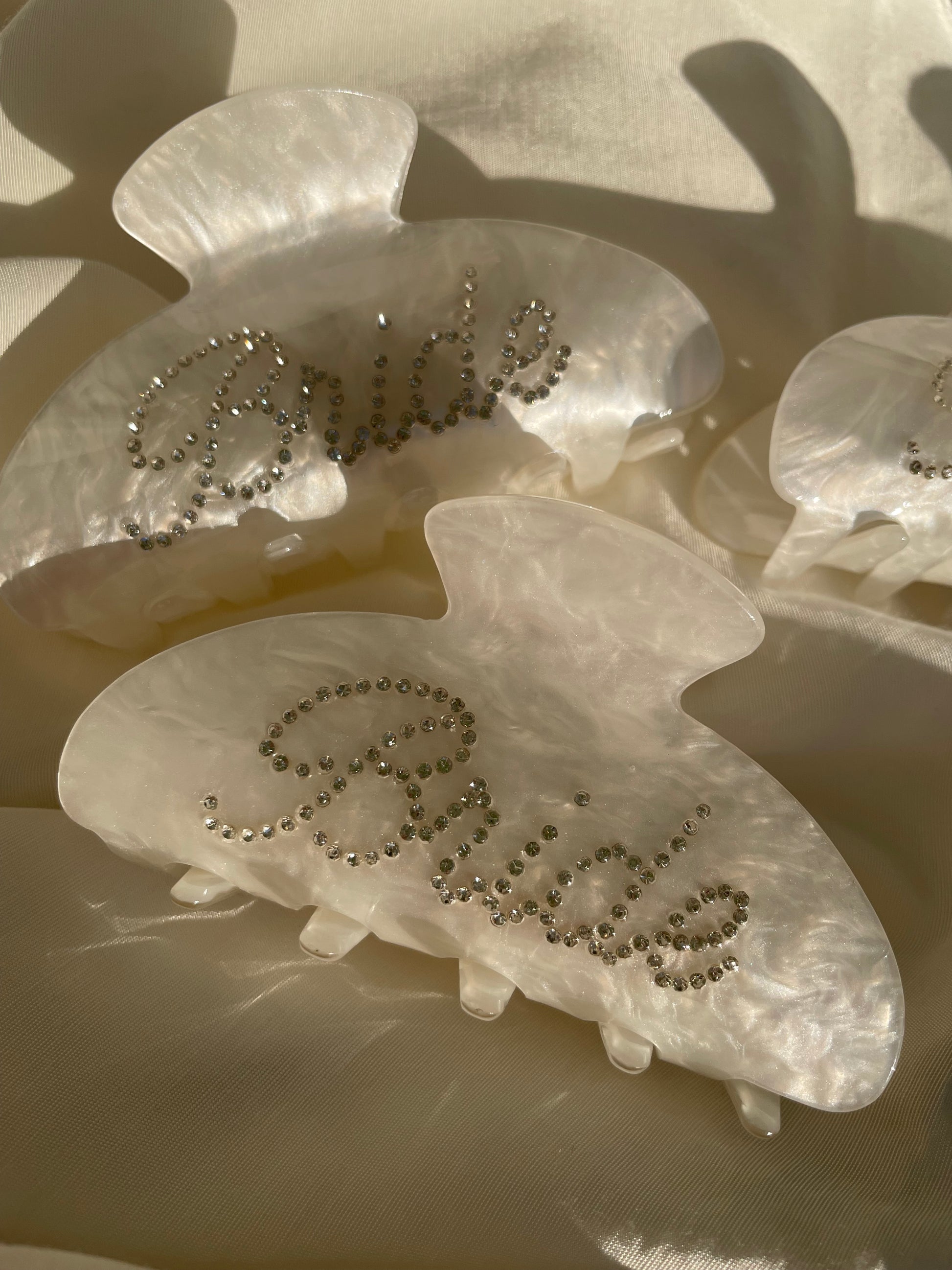 Hier siehst du mal einewunderschöne Bride Haarspange in einem wunderschönen Creme mir Glitzer Schriftzug. Zaubere dir mit dieser Haarspange ein echter Hingucker in dein Haar. Kleiner Tipp sie lässt sich super verschenken!!!