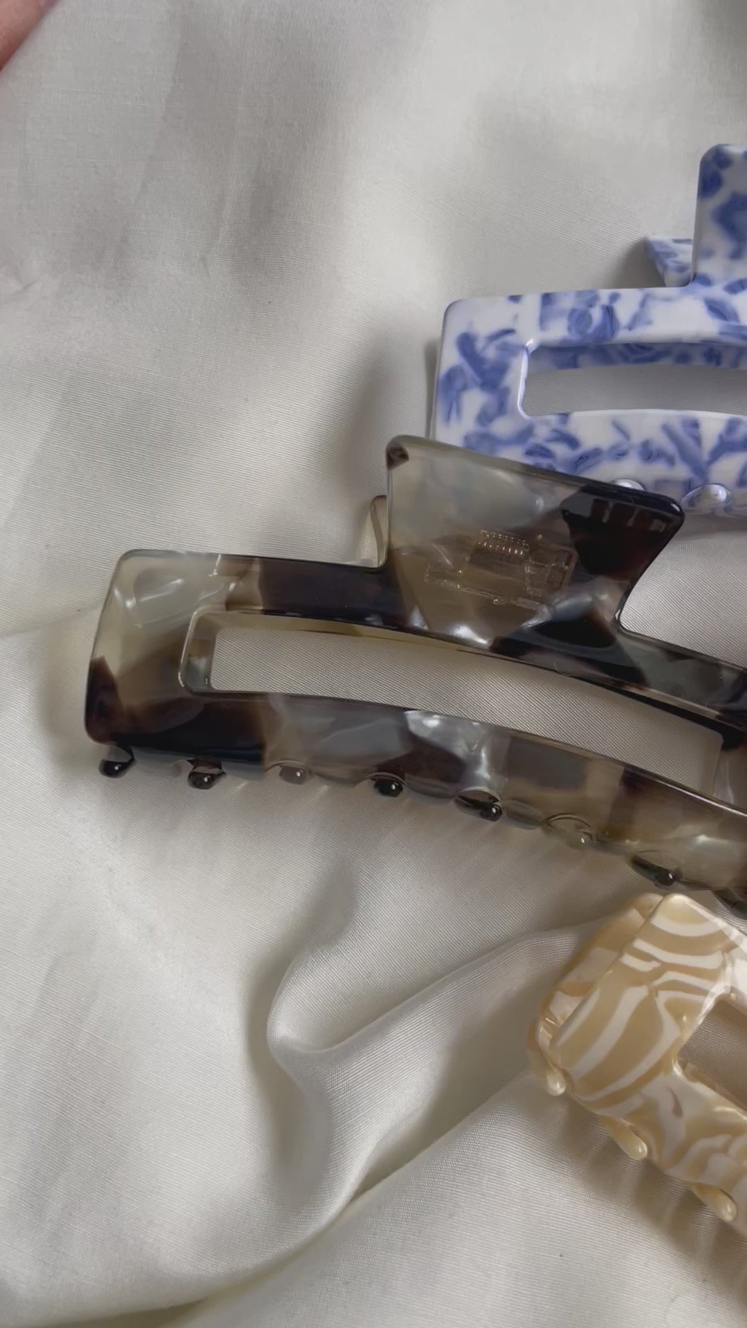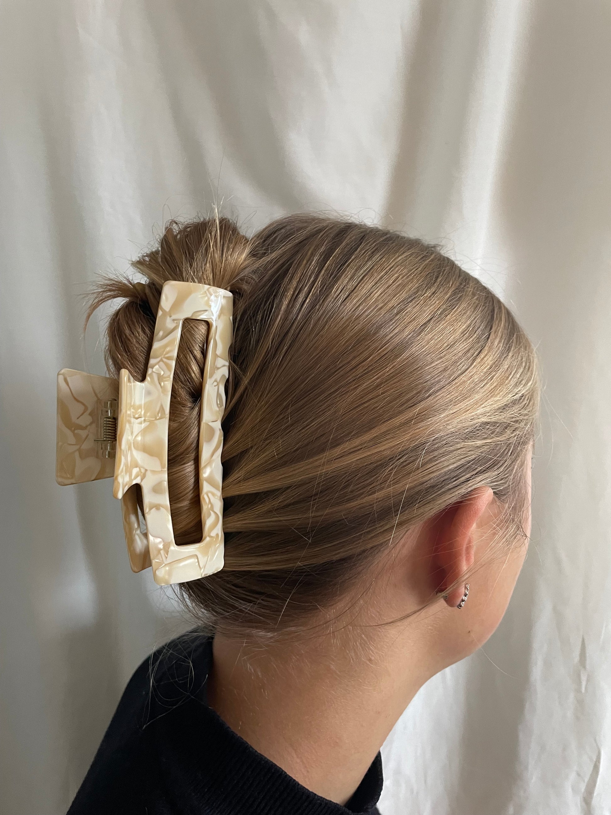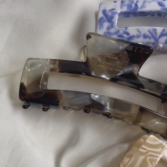 Hier seht ihr verschiedene Farben einer große Haarspange. Die Haarspange ist schön lang und kann somit viele Haare umfassen.