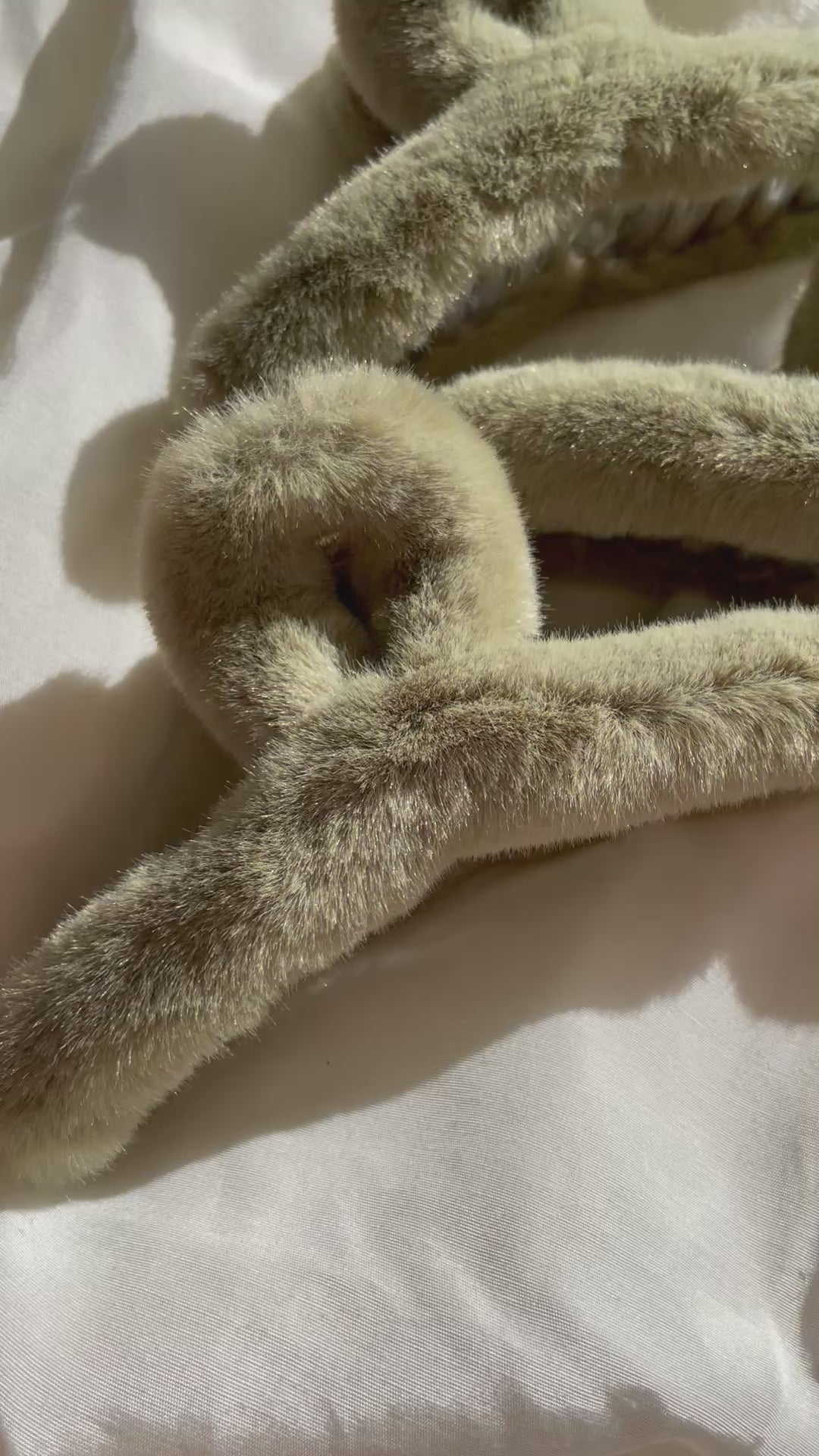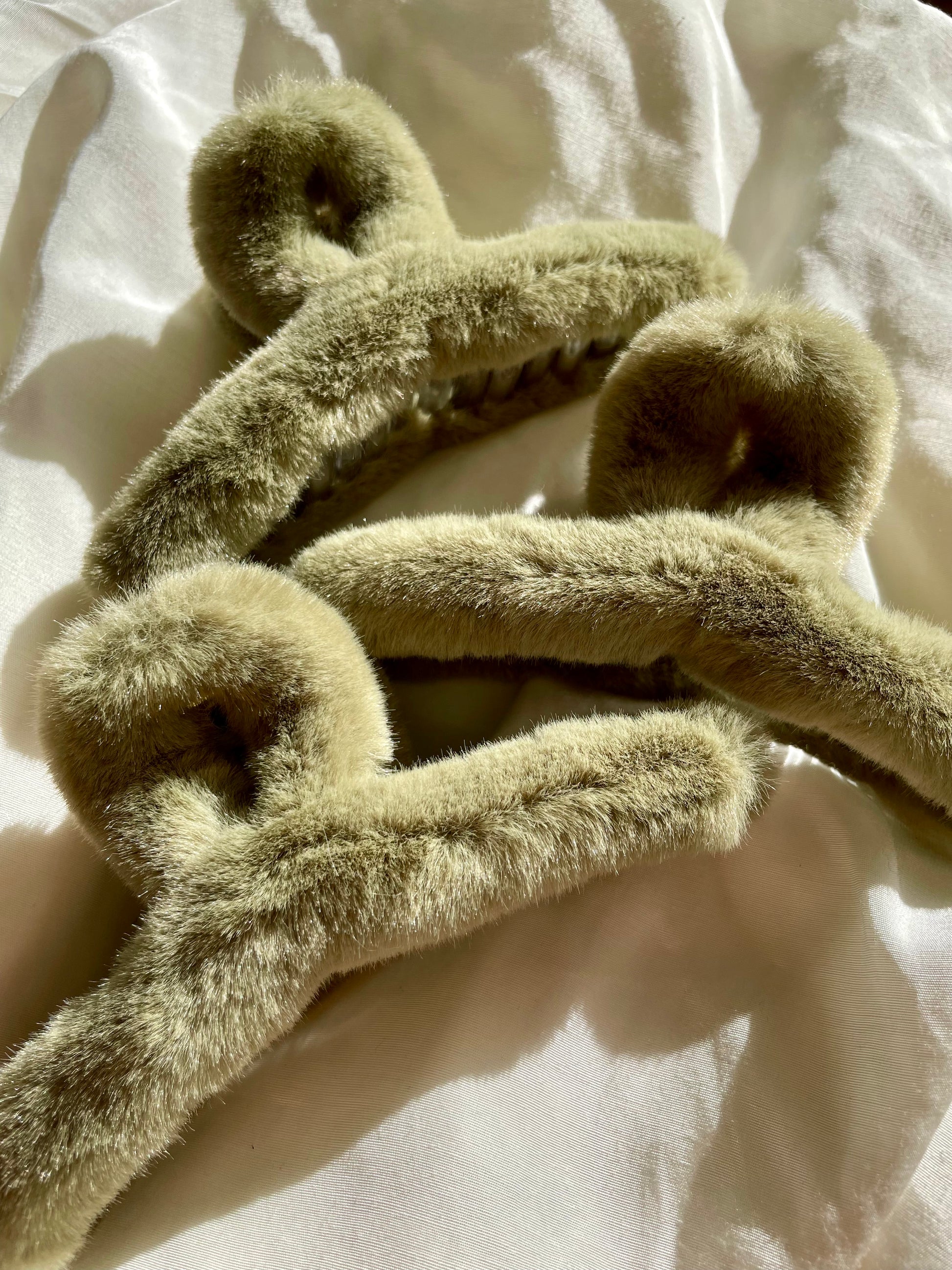 Diese wunderschöne Plüsch Haarspange findet ihr in einem wunderschönen Olive grün. Sie ist eher eine größere Haarspange, also auch für längere Haare geeignet.