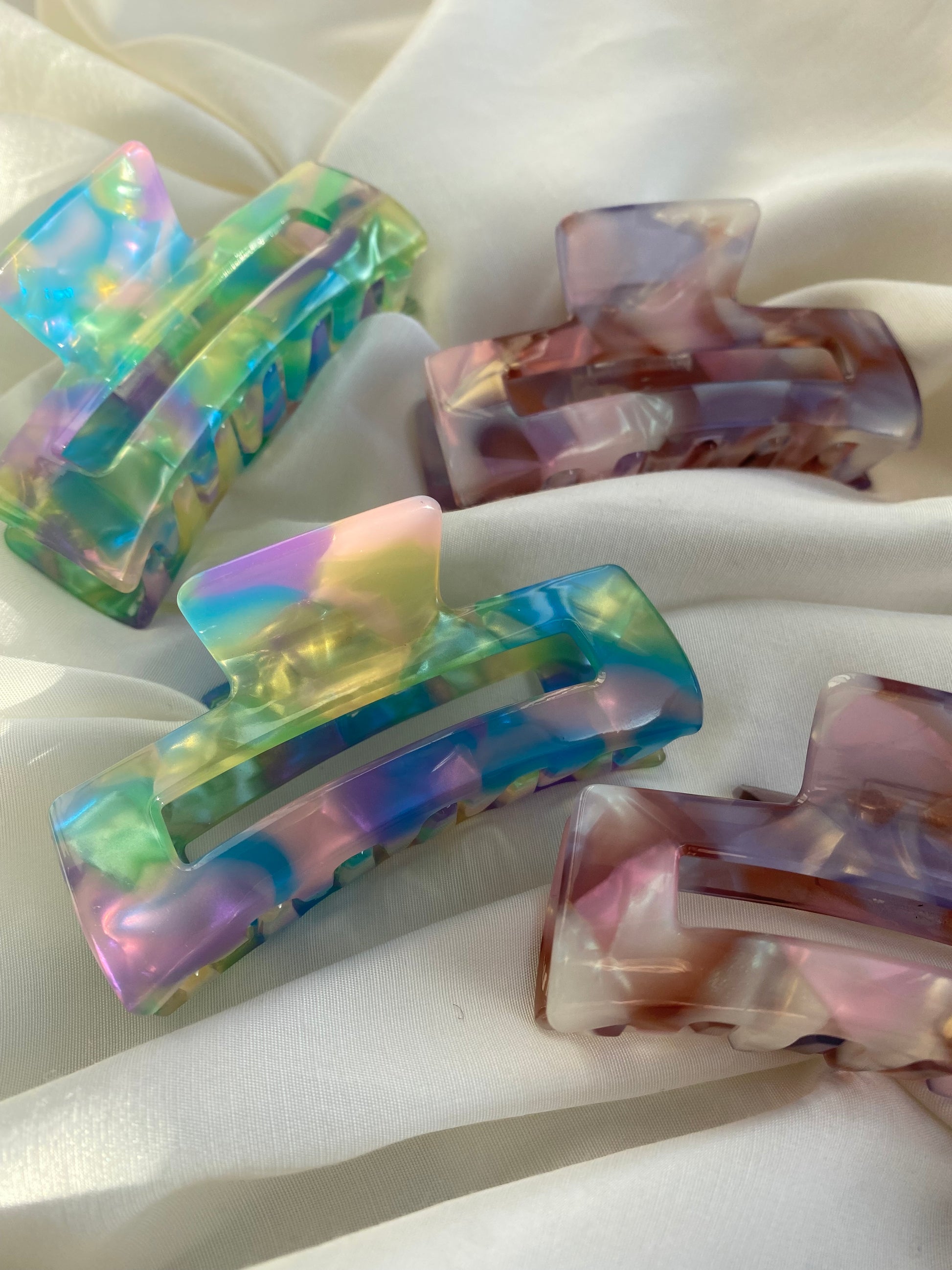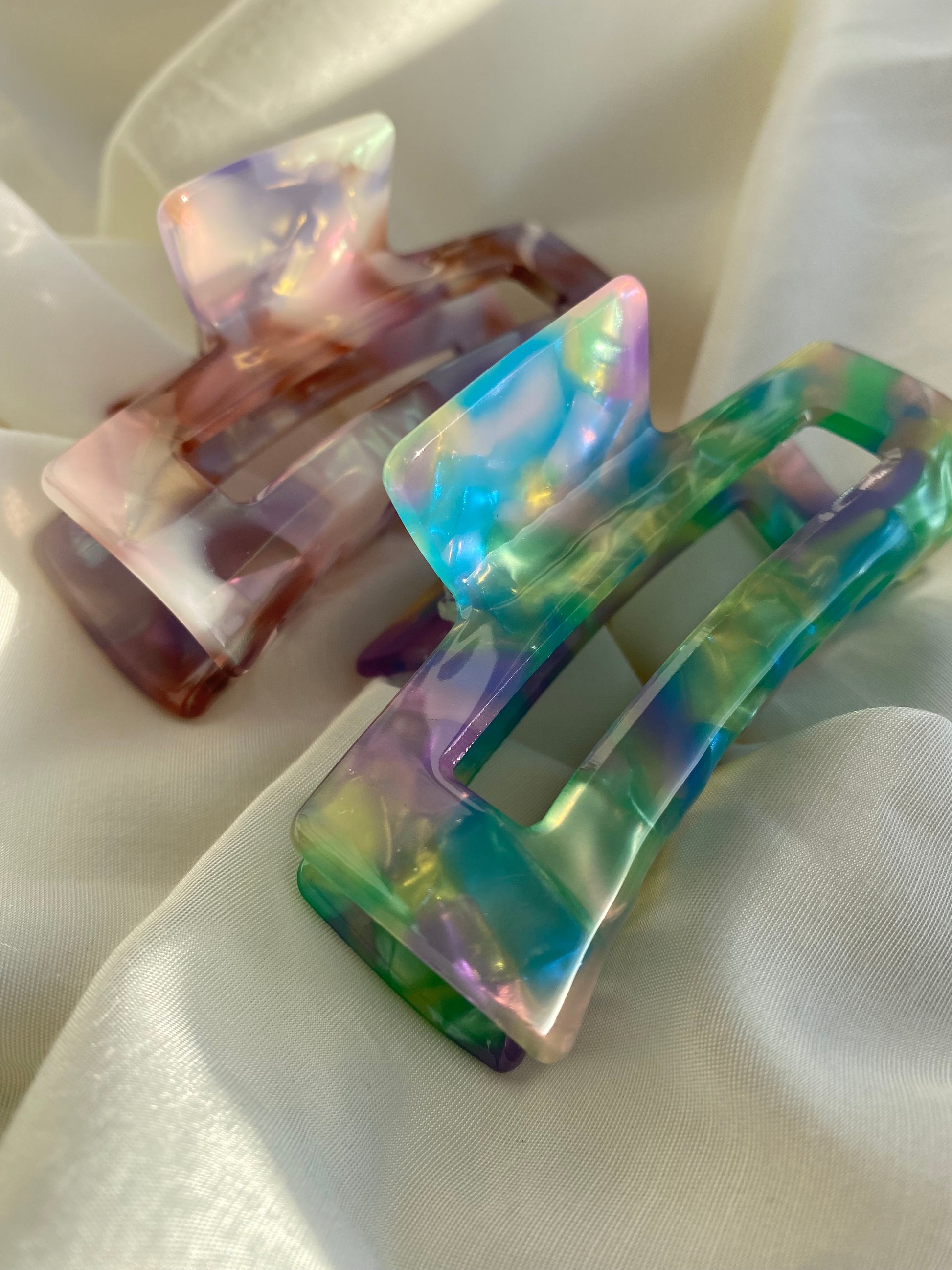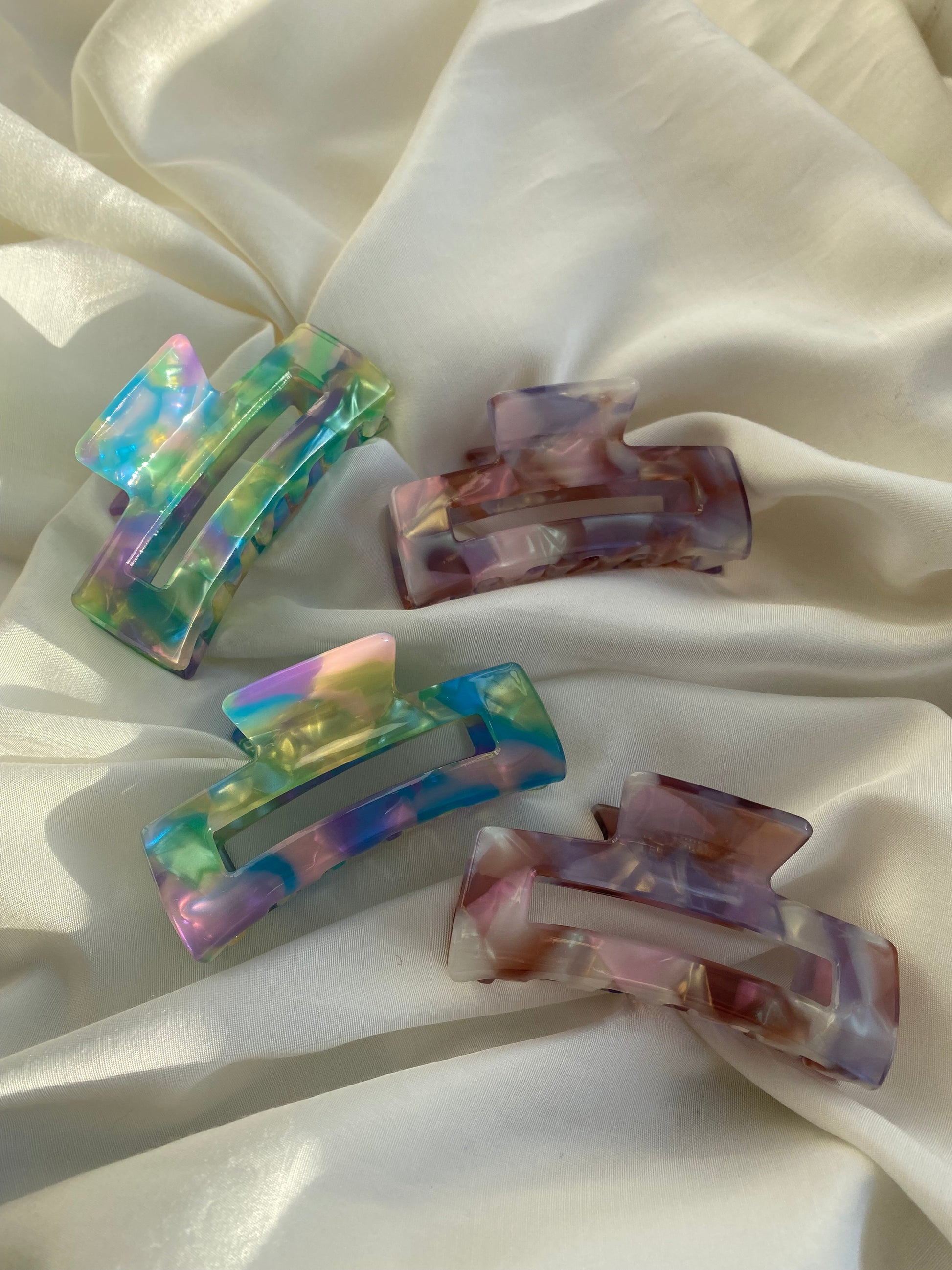 Haarspange Mittel Bunt Grün Blau Altrosa