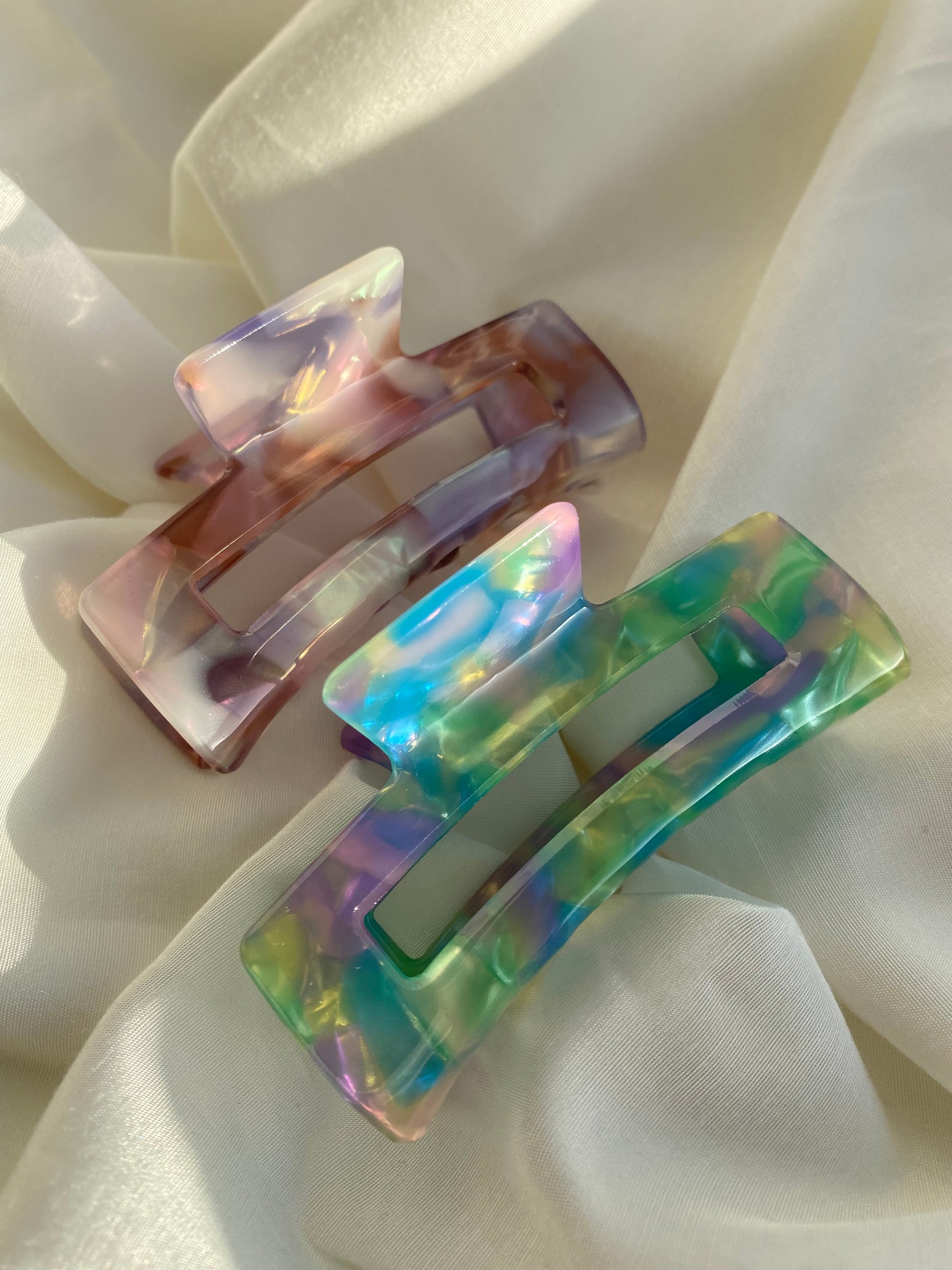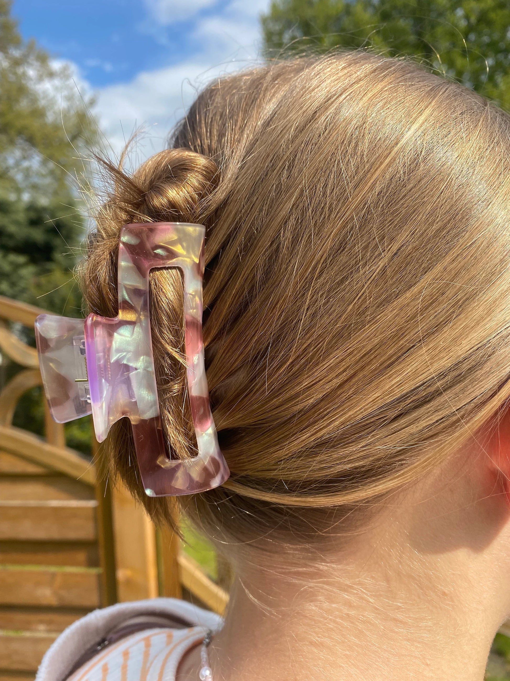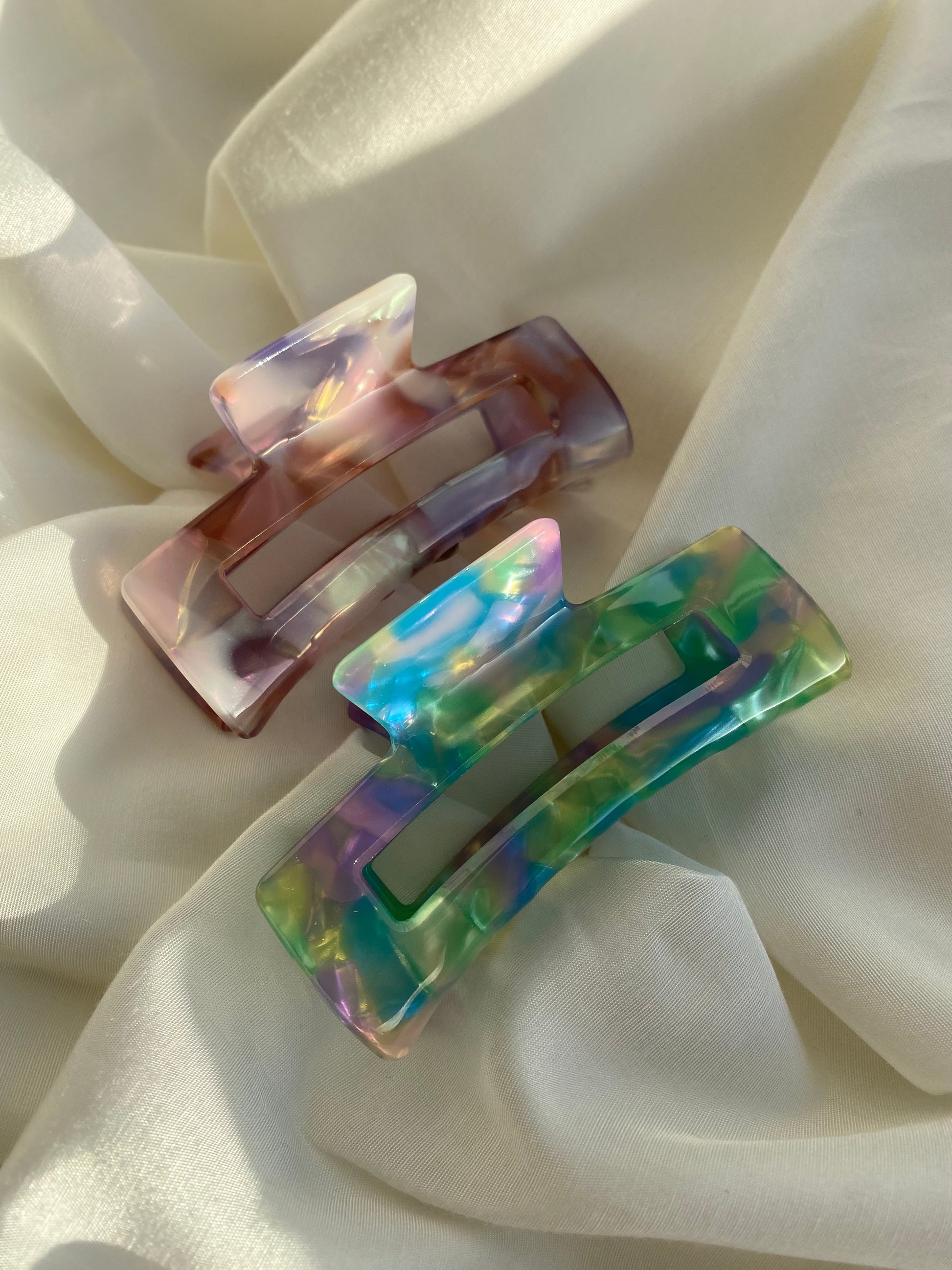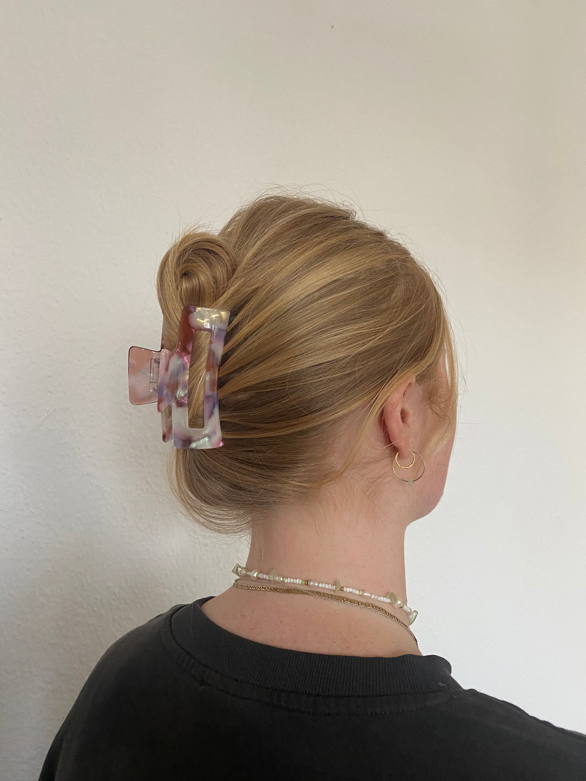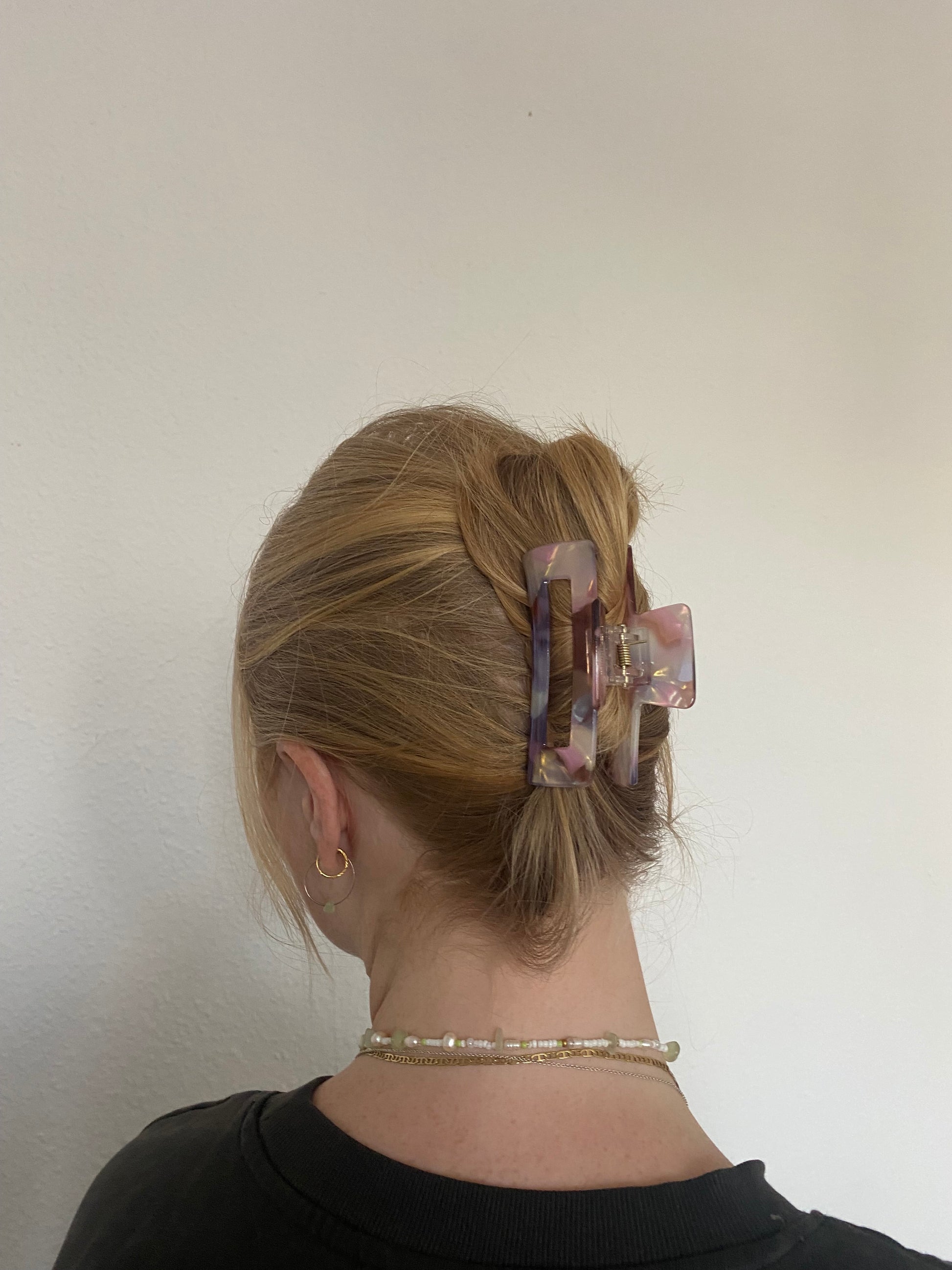 Hier seht ihr zwei verschiedene Farben meiner beliebten mittleren Haarspangen. Beide Farben haben die selbe Größe und die selbe Form. Sie eignen sich super für normal dicke und mittel lange Haare.