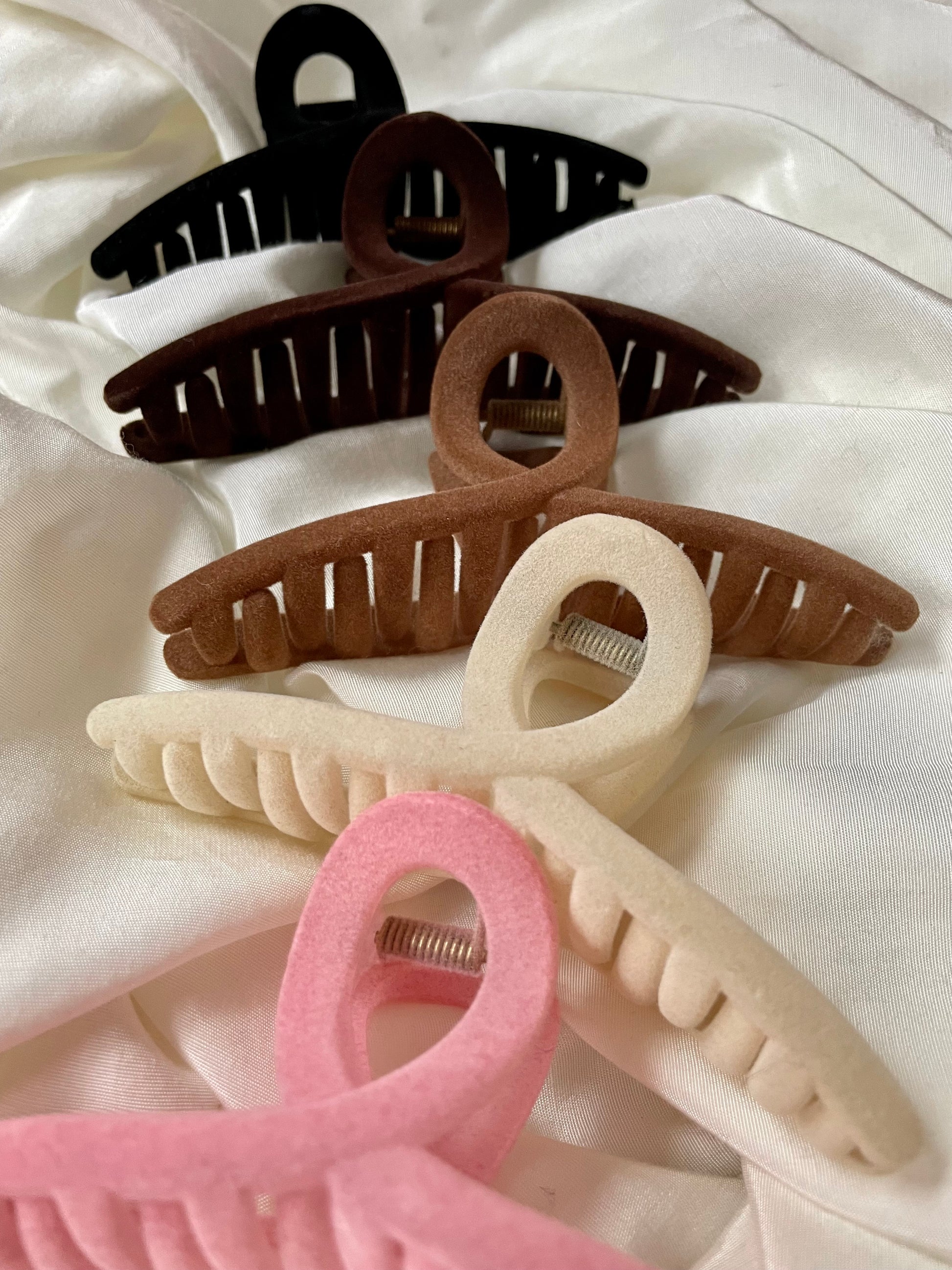 Diese wunderschöne, große, rechteckige Samt-Haarspange könnt ihr in verschiedenen Farben erwerben: Schwarz, Creme, Braun und Dunkelbraun. Die Haarspange ist für mittellange Haare und kurze Haare geeignet. Bei langen Haaren eignet sie sich um ein paar Haare zusammen zu stecken.