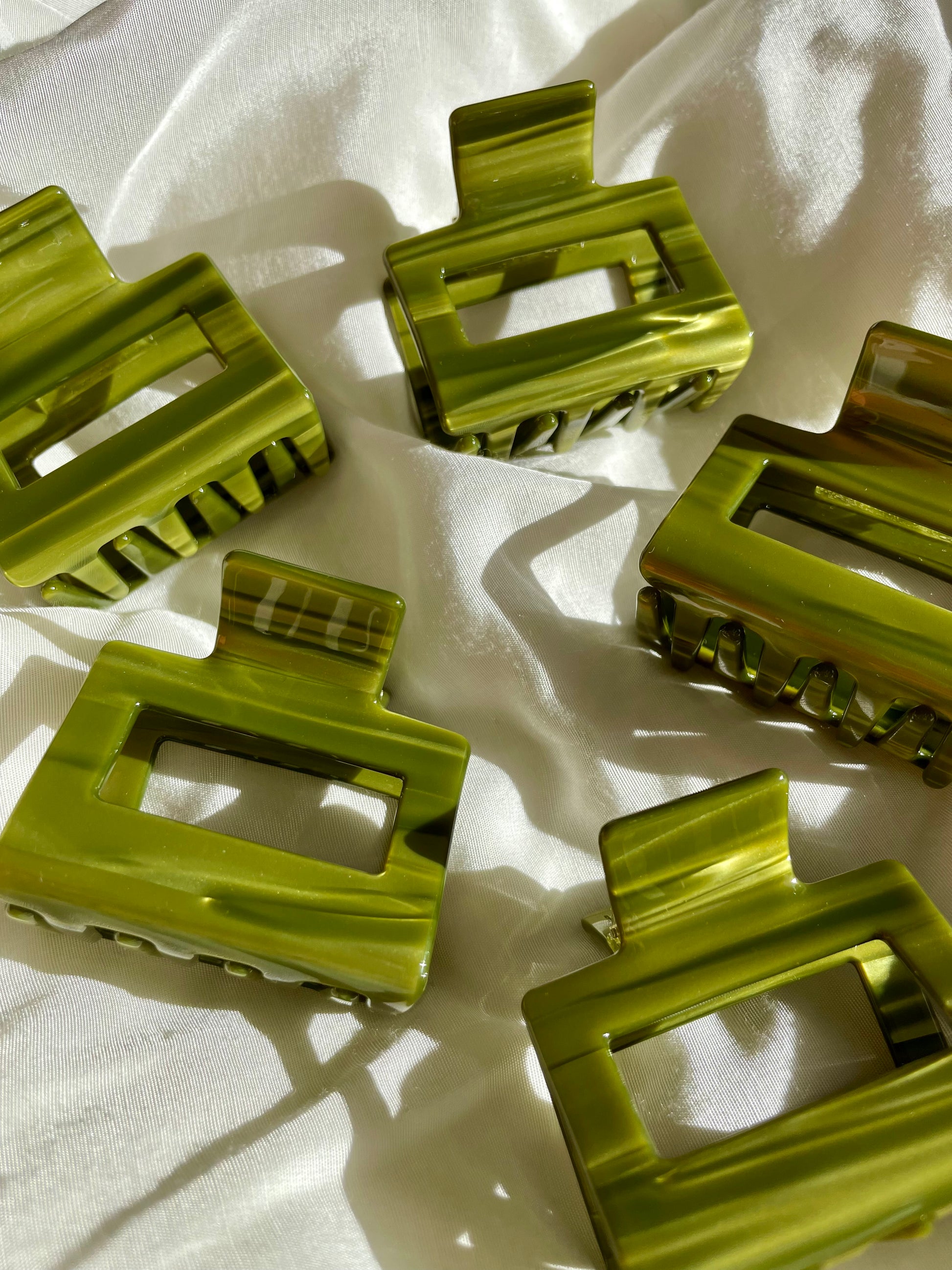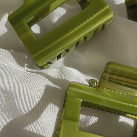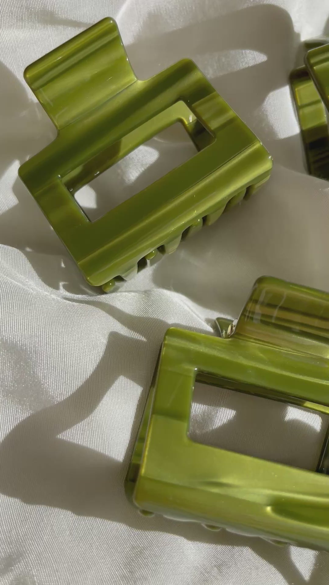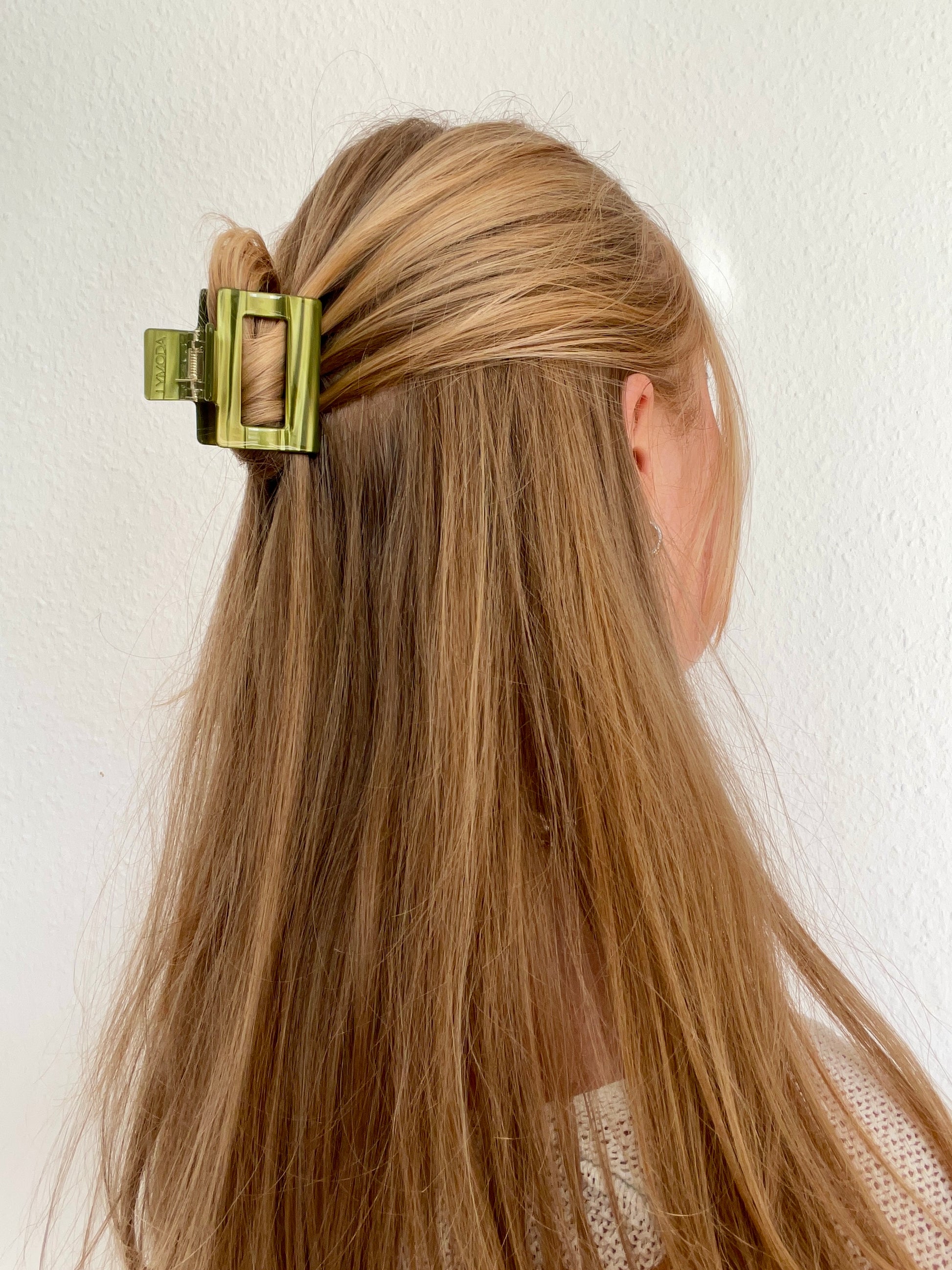 Gib deinem Haar mit unserer eigenen gebrandeten Haarspange einen coolen Style! Die mittelgroße, rechteckige Spange in Matcha Grün oder im Set passt zu jedem Look. Sie hält deine Haare sicher zusammen – ob nur ein paar Strähnen oder ein ganzer Zopf.