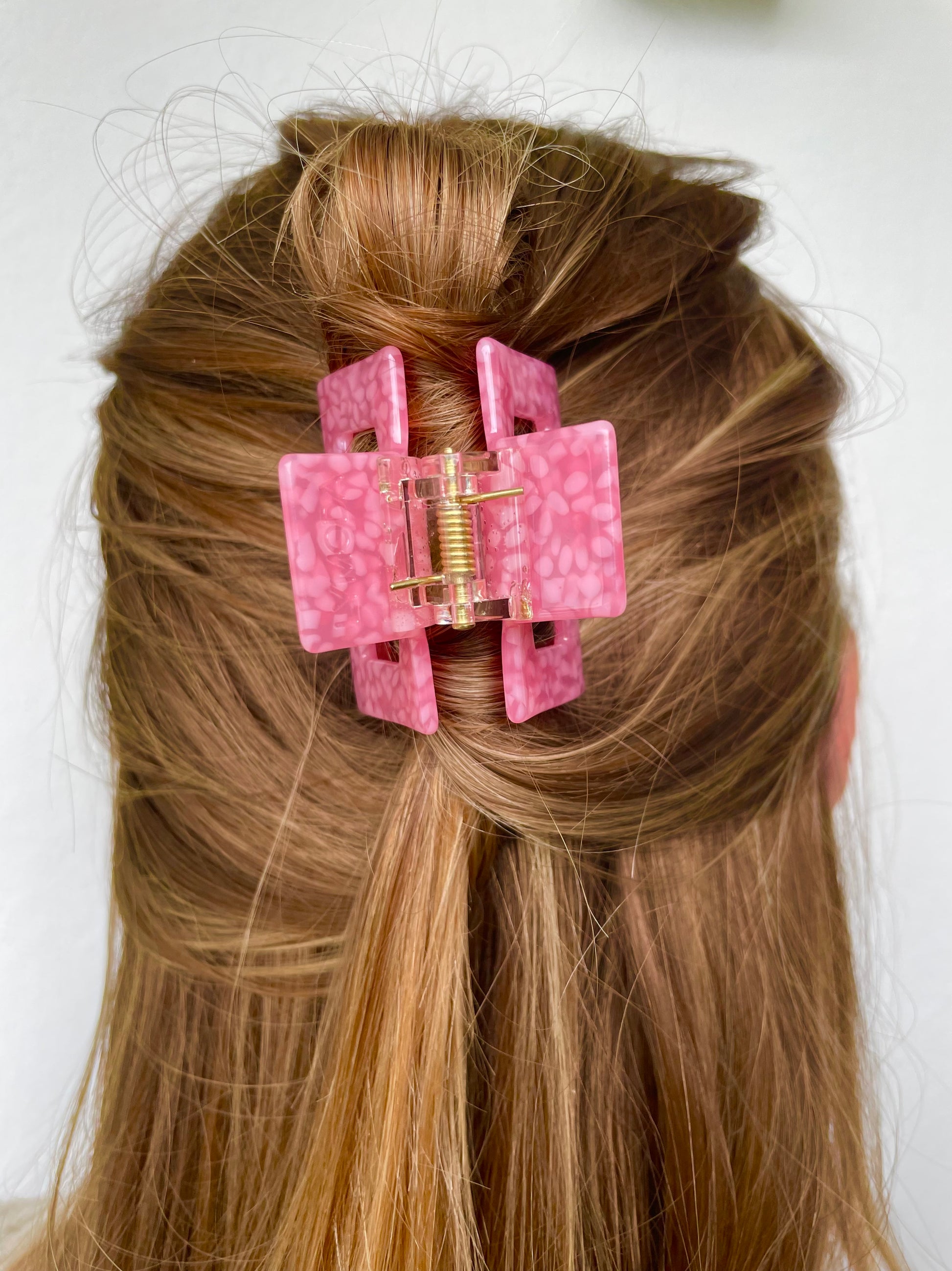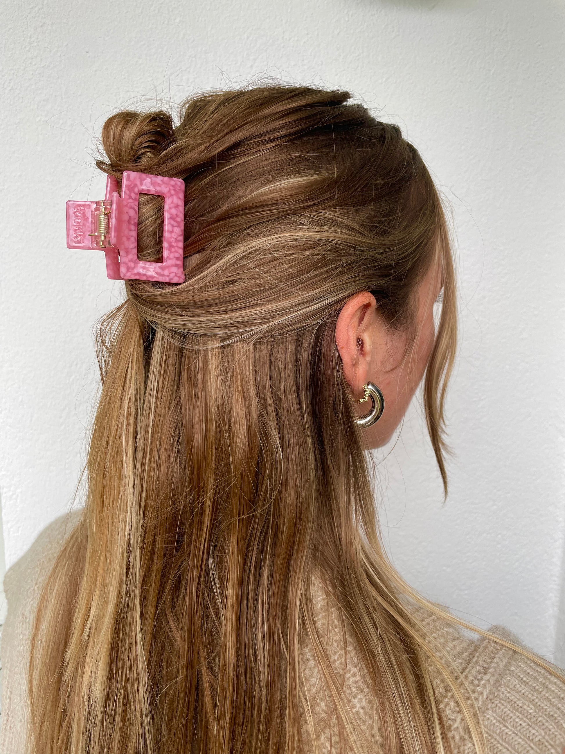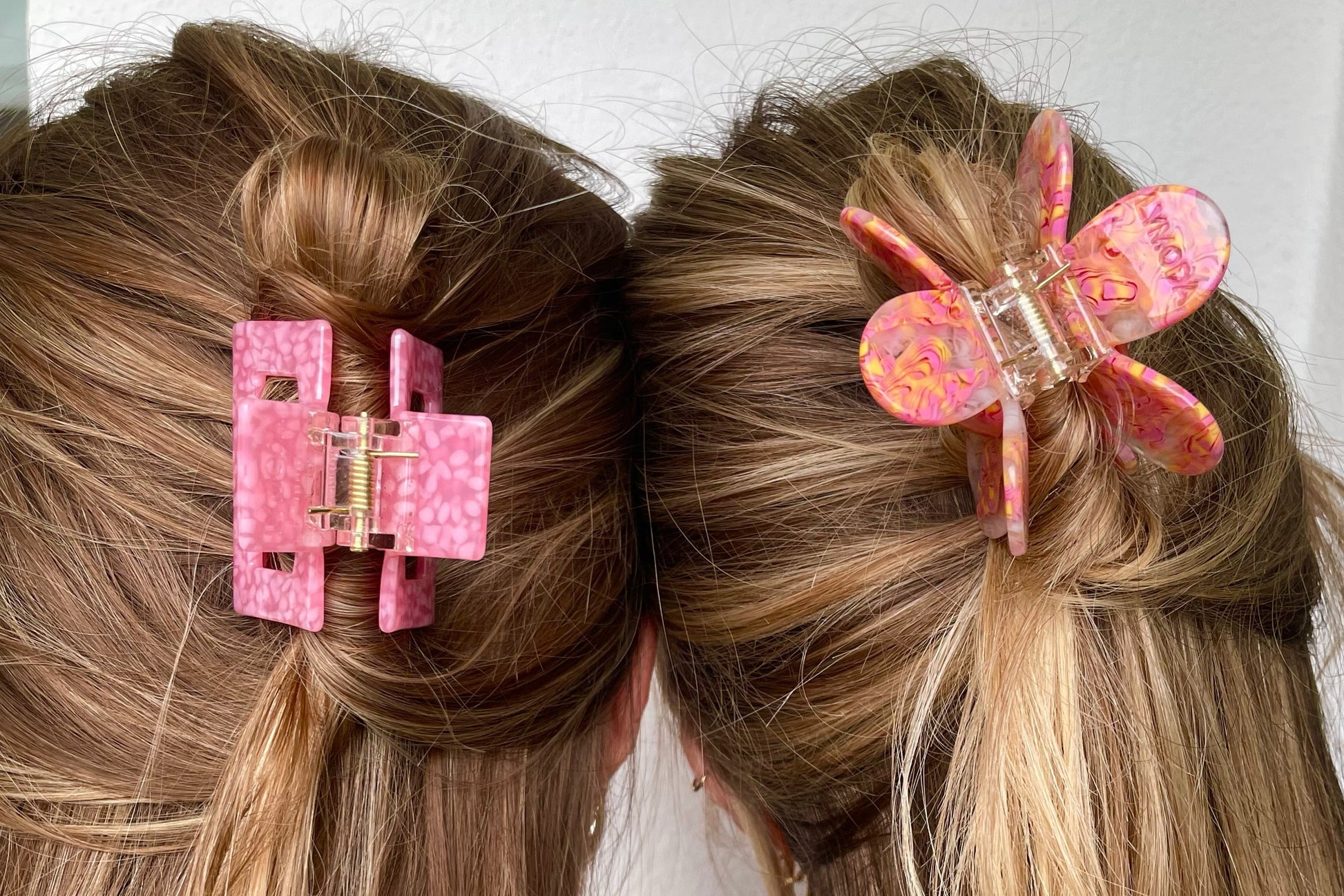 Gib deinem Haar mit unserer eigenen gebrandeten Haarspange einen coolen Style! Die mittelgroße, rechteckige Spange in Rosa oder im Set passt zu jedem Look. Sie hält deine Haare sicher zusammen – ob nur ein paar Strähnen oder ein ganzer Zopf. Gefertigt aus pflanzlichem Cellulose Acetat, ist sie nicht nur schick, sondern auch umweltfreundlich. Bei Fragen melde dich gern!