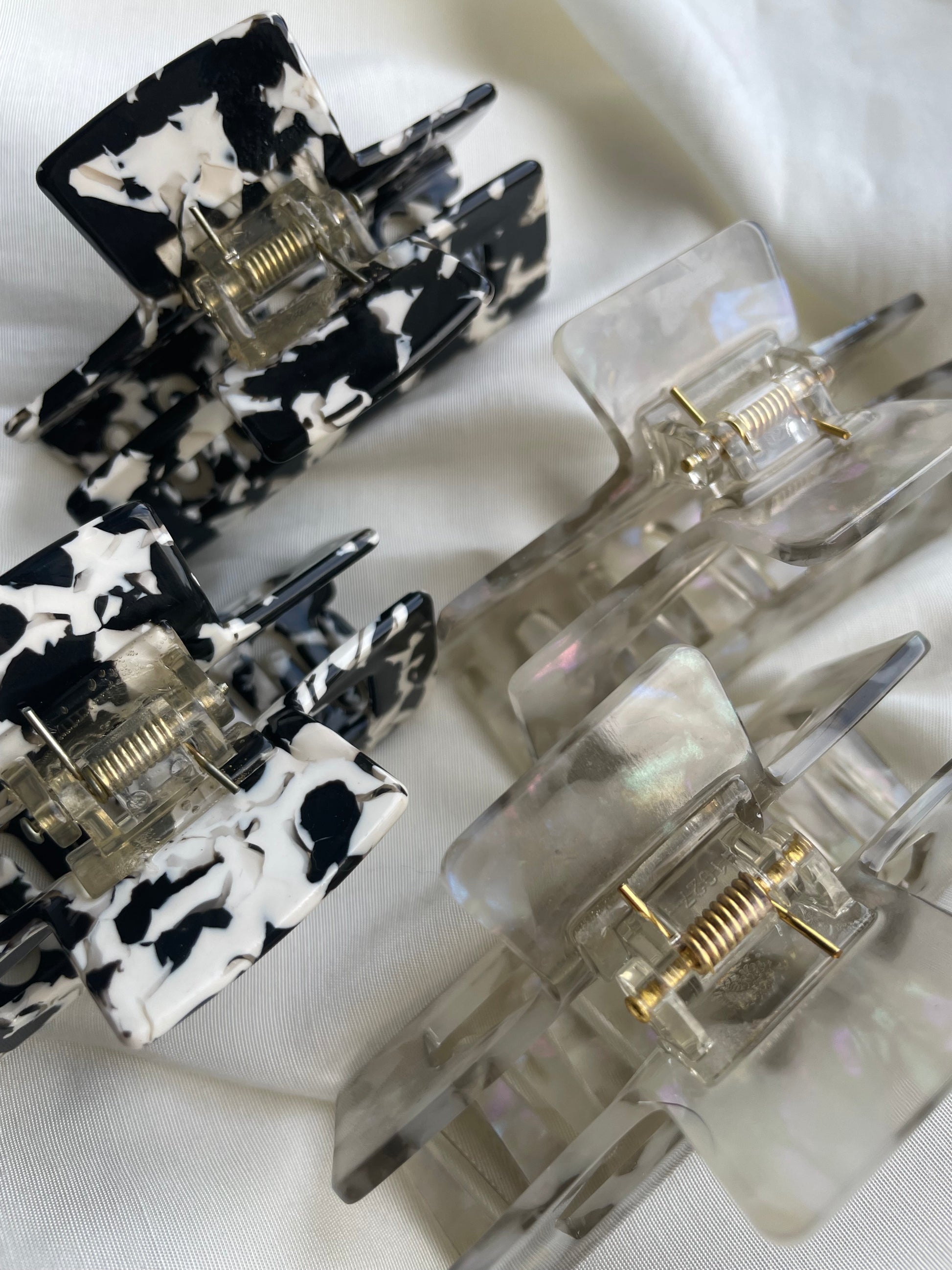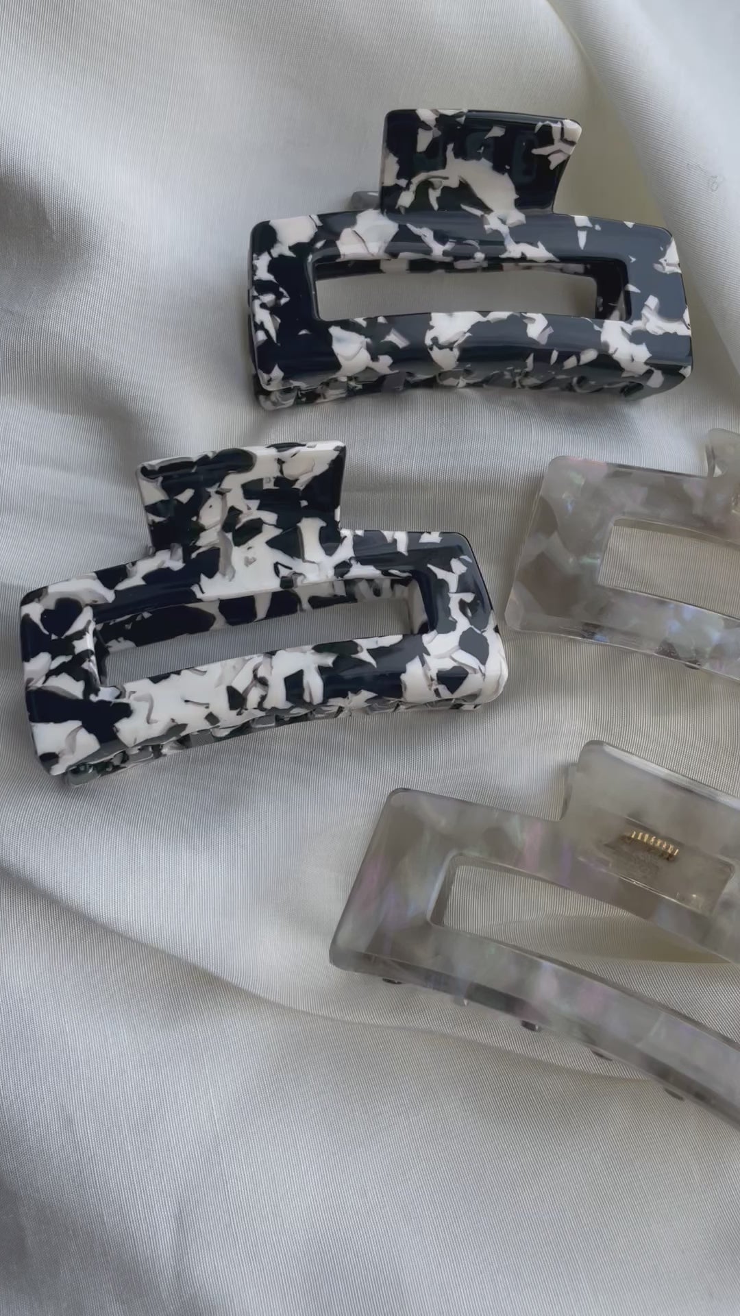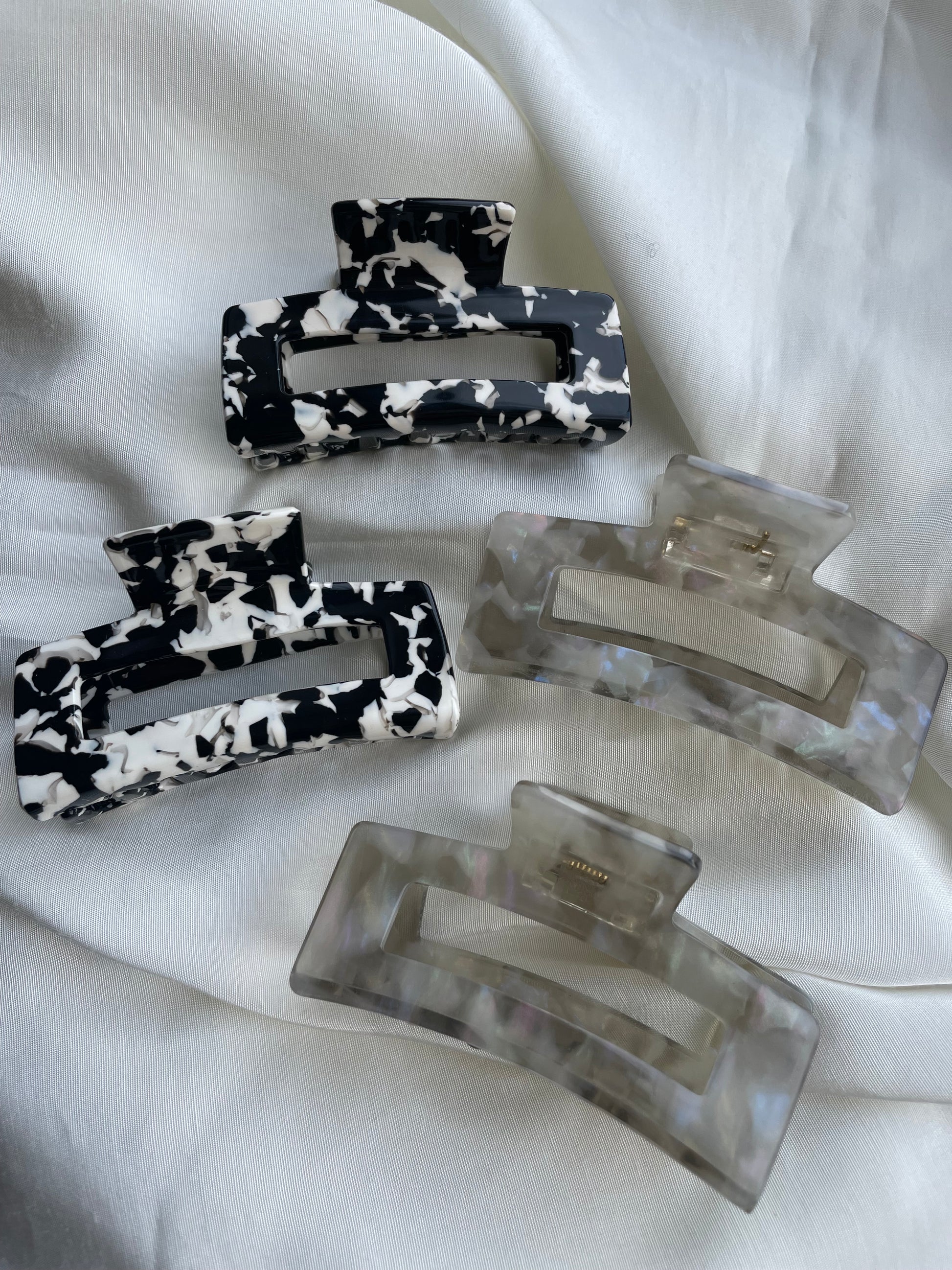 Hier seht ihr meine mittelgroßen, rechteckigen Haarspange in zwei verschiedenen Farben: schwarz-weiß und grau. Die Haarspangen sind perfekt für mittellanges und mittel dickes Haar geeignet. Bei Fragen schreibt mir gerne🙂
