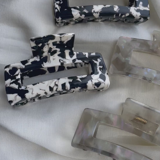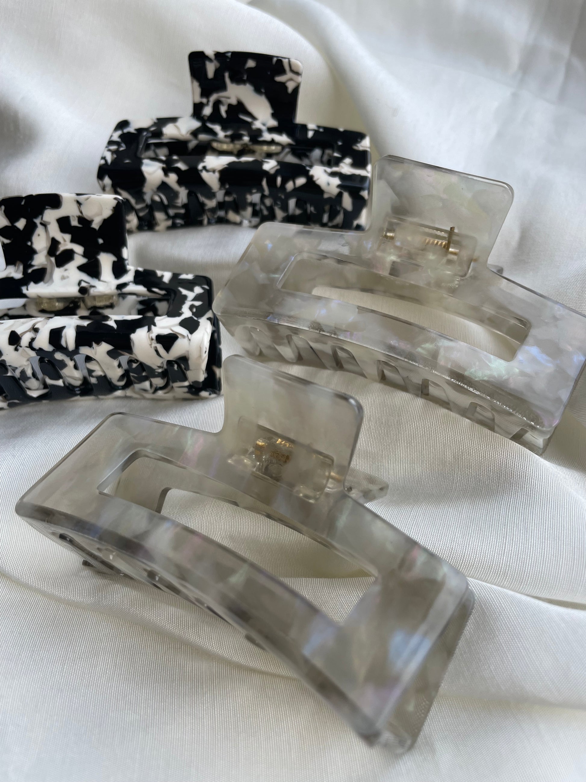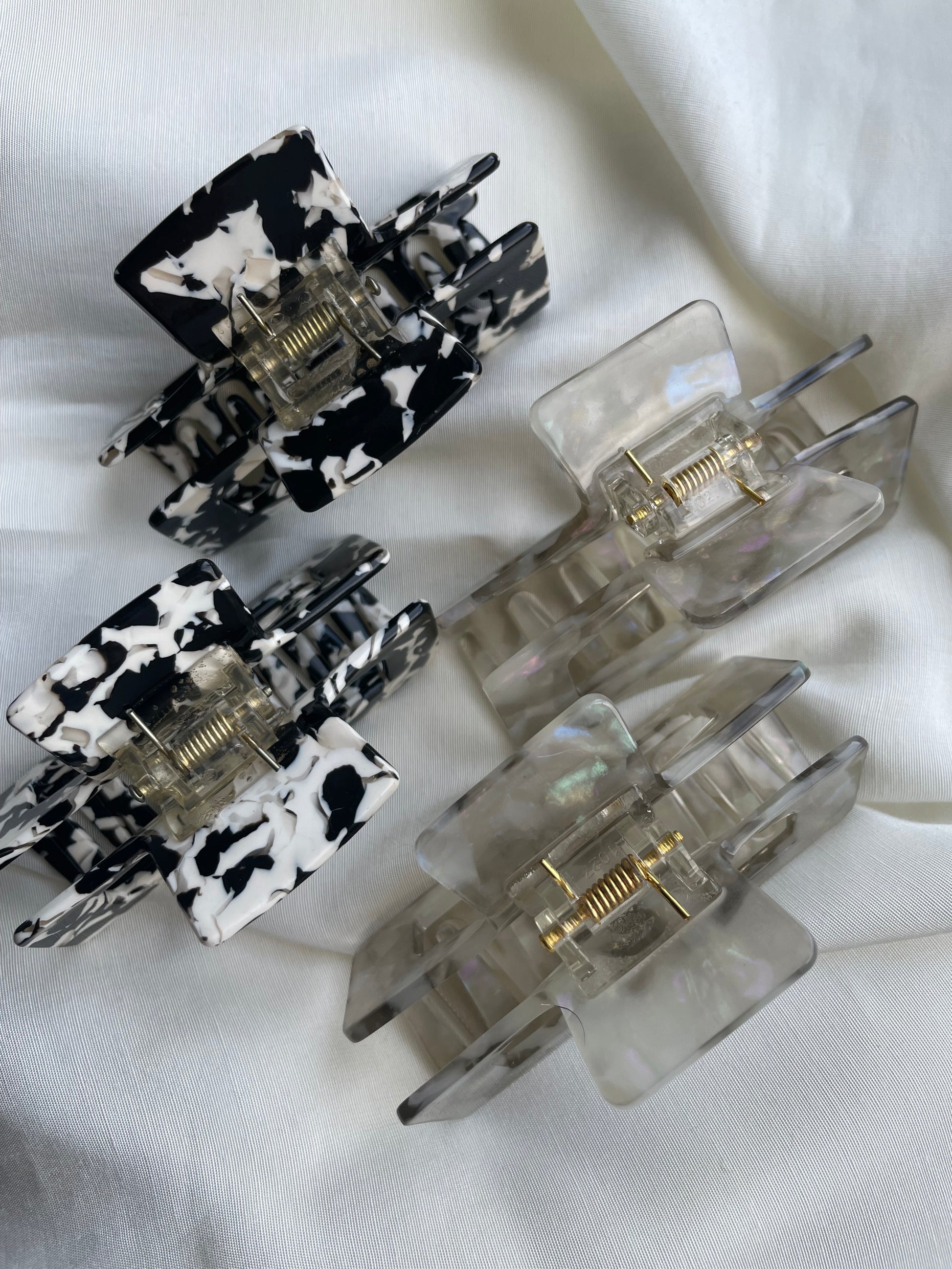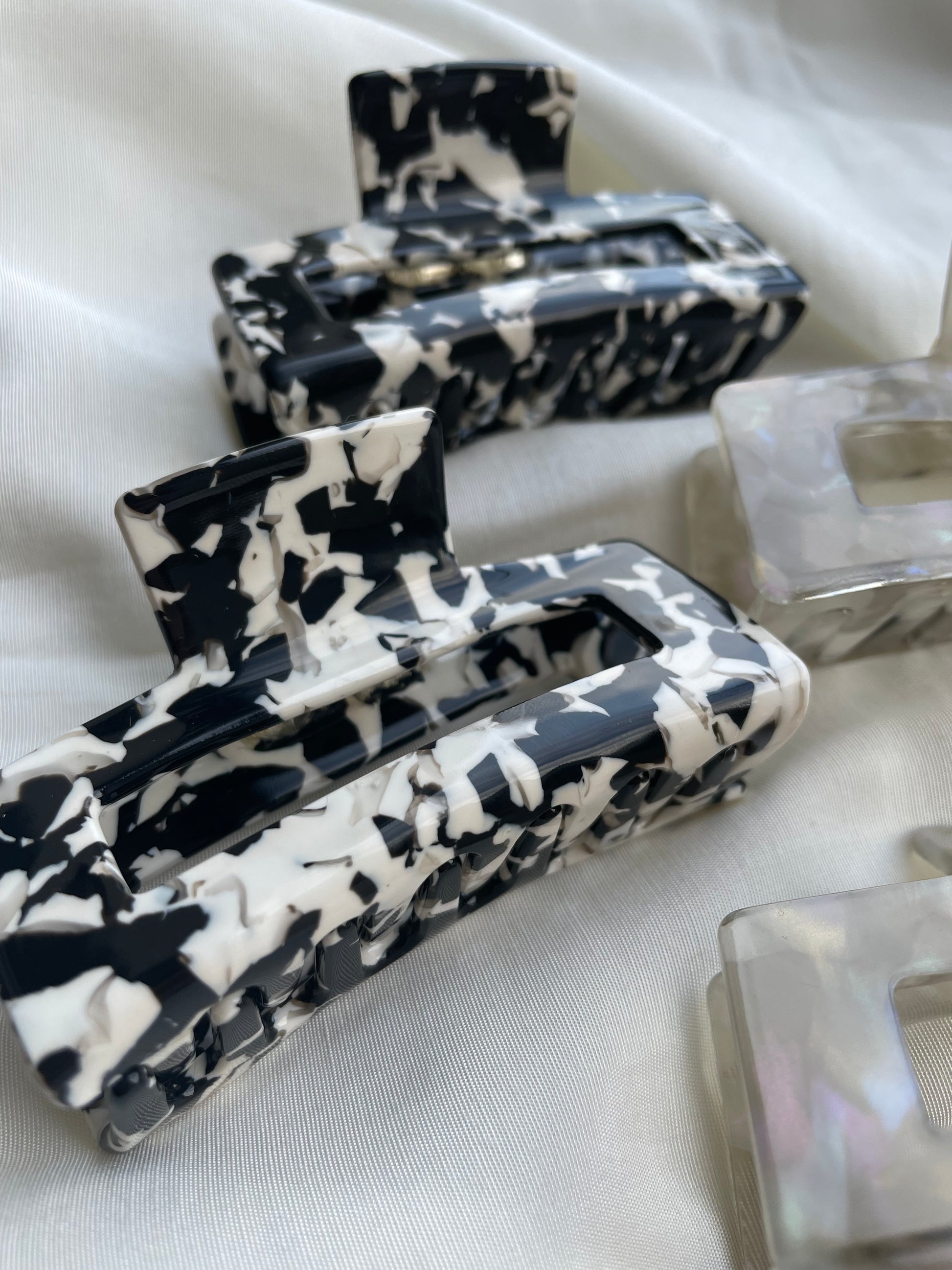 Hier seht ihr meine mittelgroßen, rechteckigen Haarspange in zwei verschiedenen Farben: schwarz-weiß und grau. Die Haarspangen sind perfekt für mittellanges und mittel dickes Haar geeignet. Bei Fragen schreibt mir gerne🙂