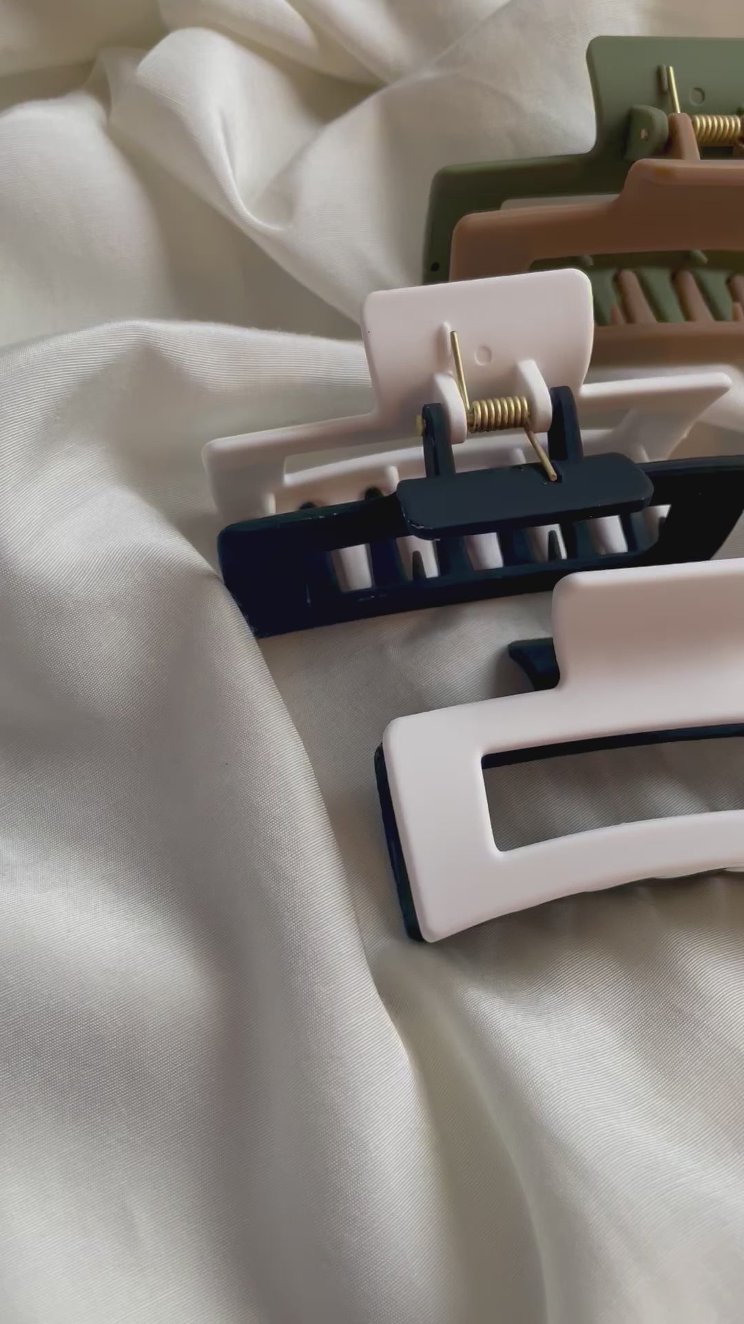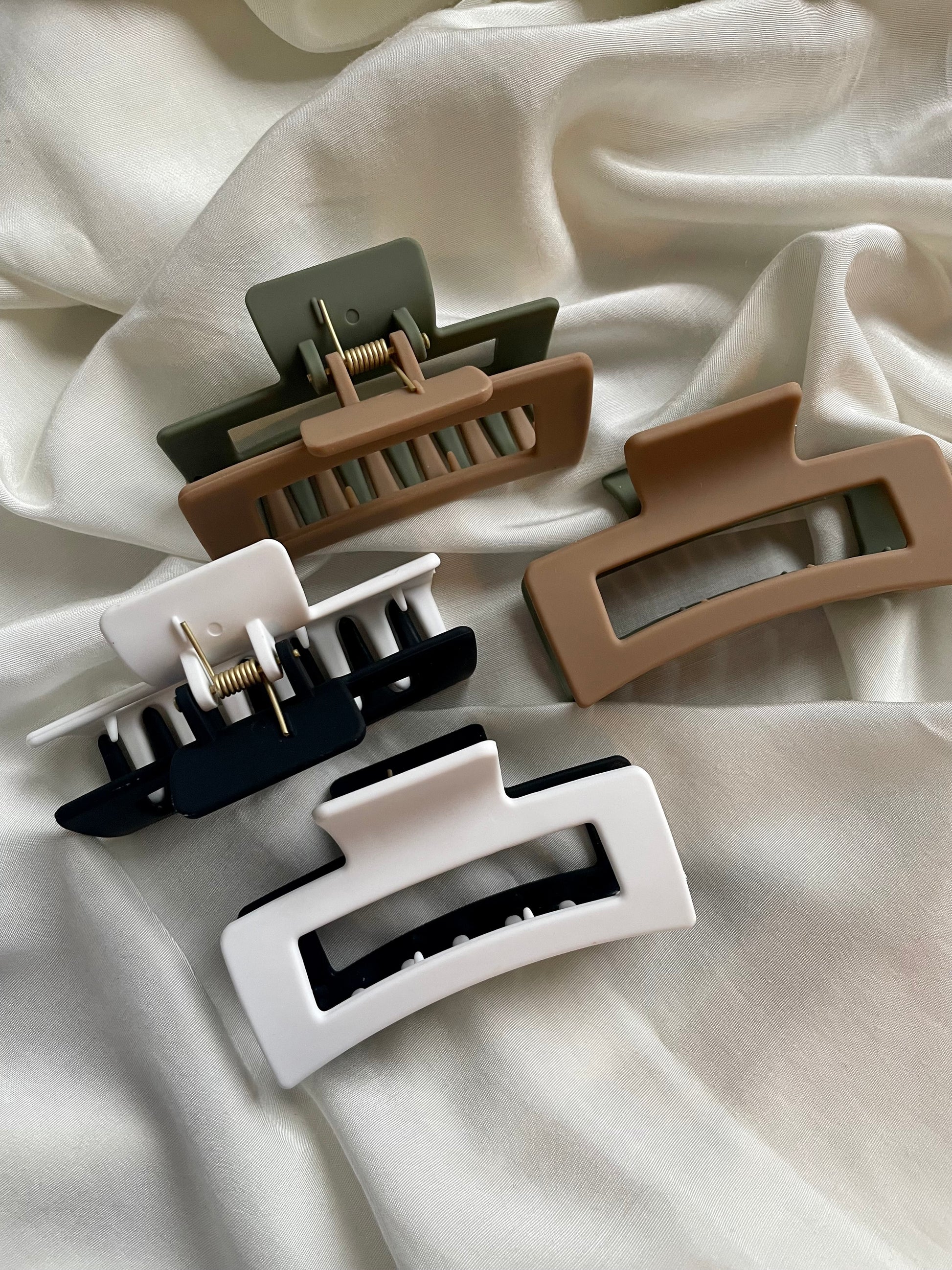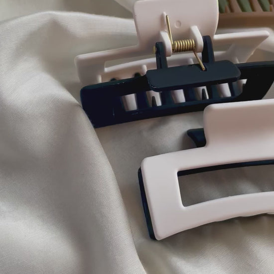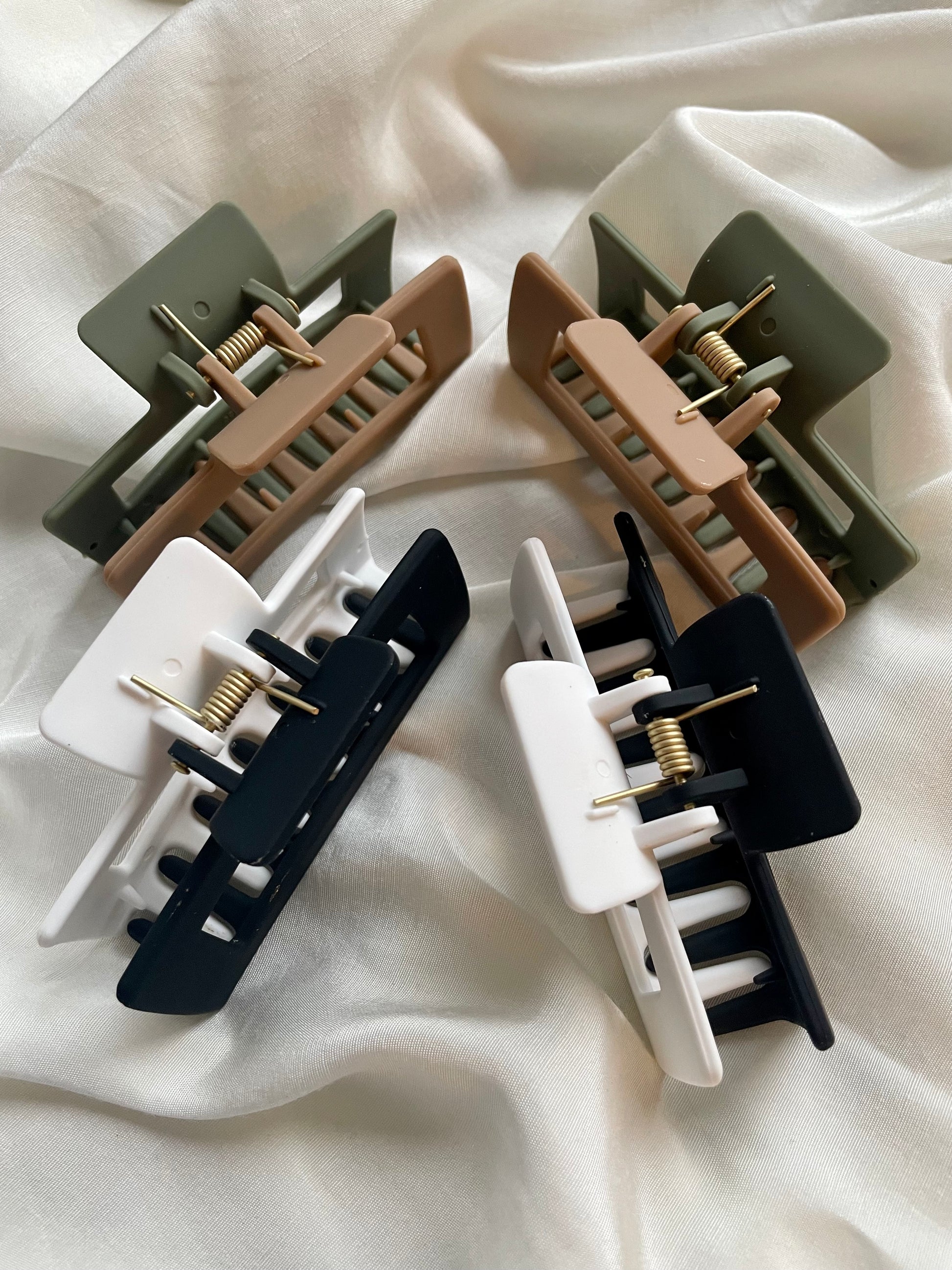Hier seht ihr zwei verschiedene zweifarbige Haarspangen. Ihr könnt die Haarspange in schwarz-weiß oder in braun-grün erwerben. Die Haarspange es Mittel groß und hat eine matte Optik.