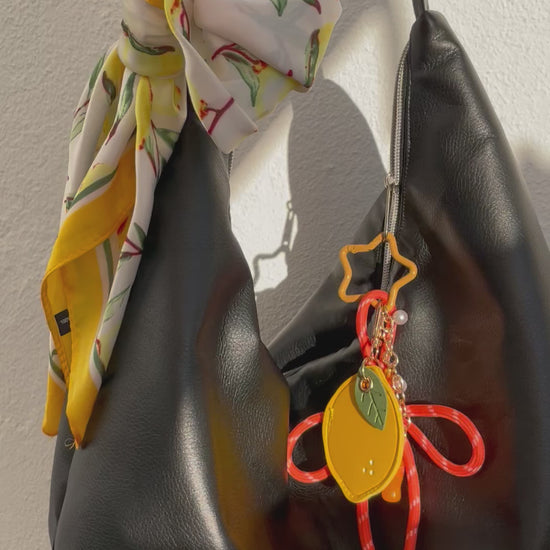 Dieser trendige Taschenanhänger ist ein absoluter Hingucker an deinem Schlüssel oder deiner Tasche. Mit dem Herz-Karabiner und der süßen Zitrone mit verschiedenen Bändern verziert ist er nicht nur praktisch, sondern auch ein echter Blickfang. Die beiden verschiedenen Kordeln und die Möglichkeit diese an alles mögliches dran zu machen ihn zu einem einzigartigen Accessoire.