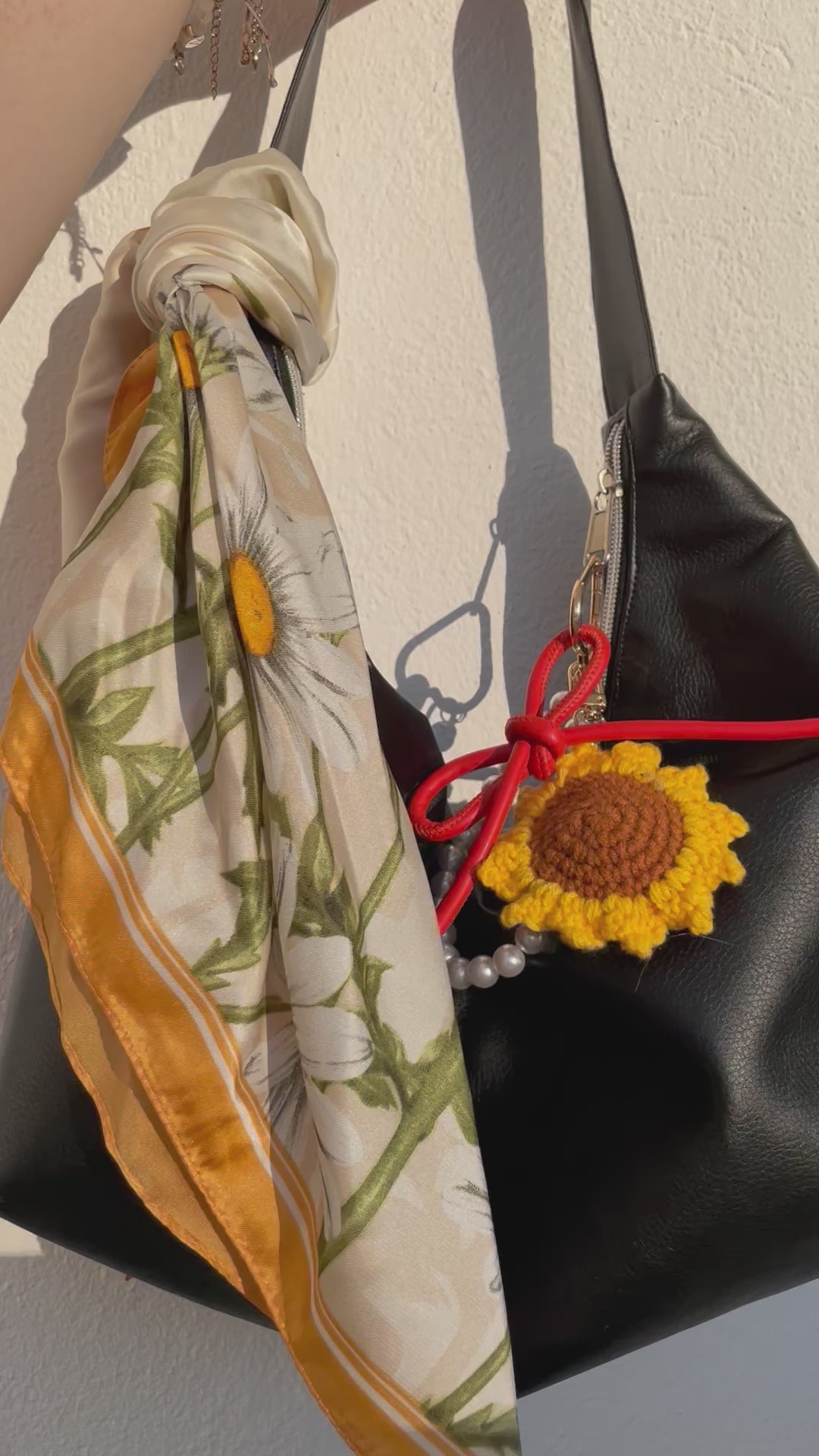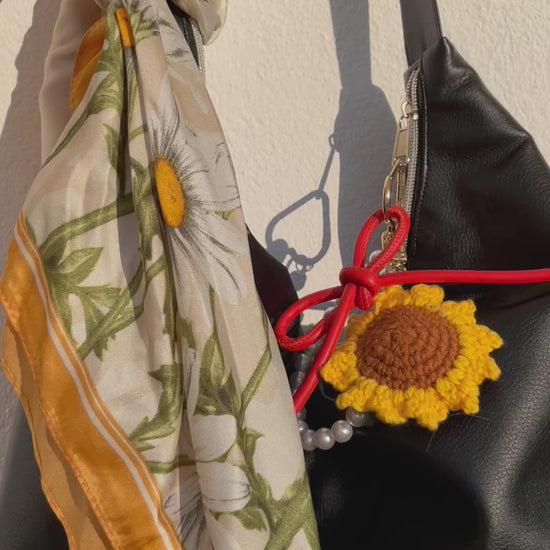 Dieser trendige Taschenanhänger ist ein absoluter Hingucker an deinem Schlüssel oder deiner Tasche. Mit dem Herz-Karabiner und der süßen Sonneblume mit verschiedenen Bändern verziert ist er nicht nur praktisch, sondern auch ein echter Blickfang. Die beiden verschiedenen Kordeln und die Möglichkeit diese an alles mögliches dran zu machen ihn zu einem einzigartigen Accessoire.