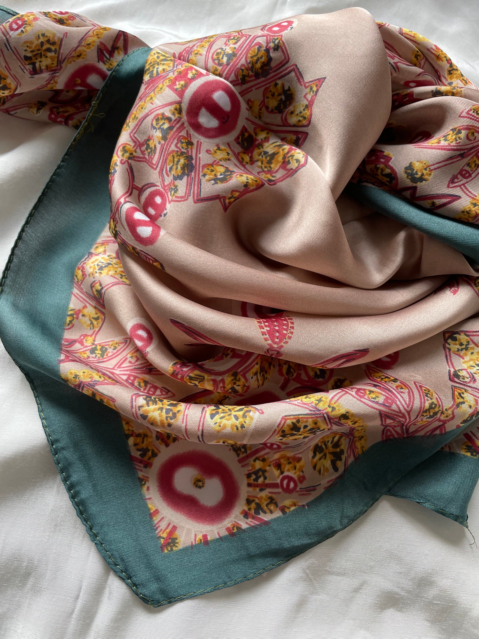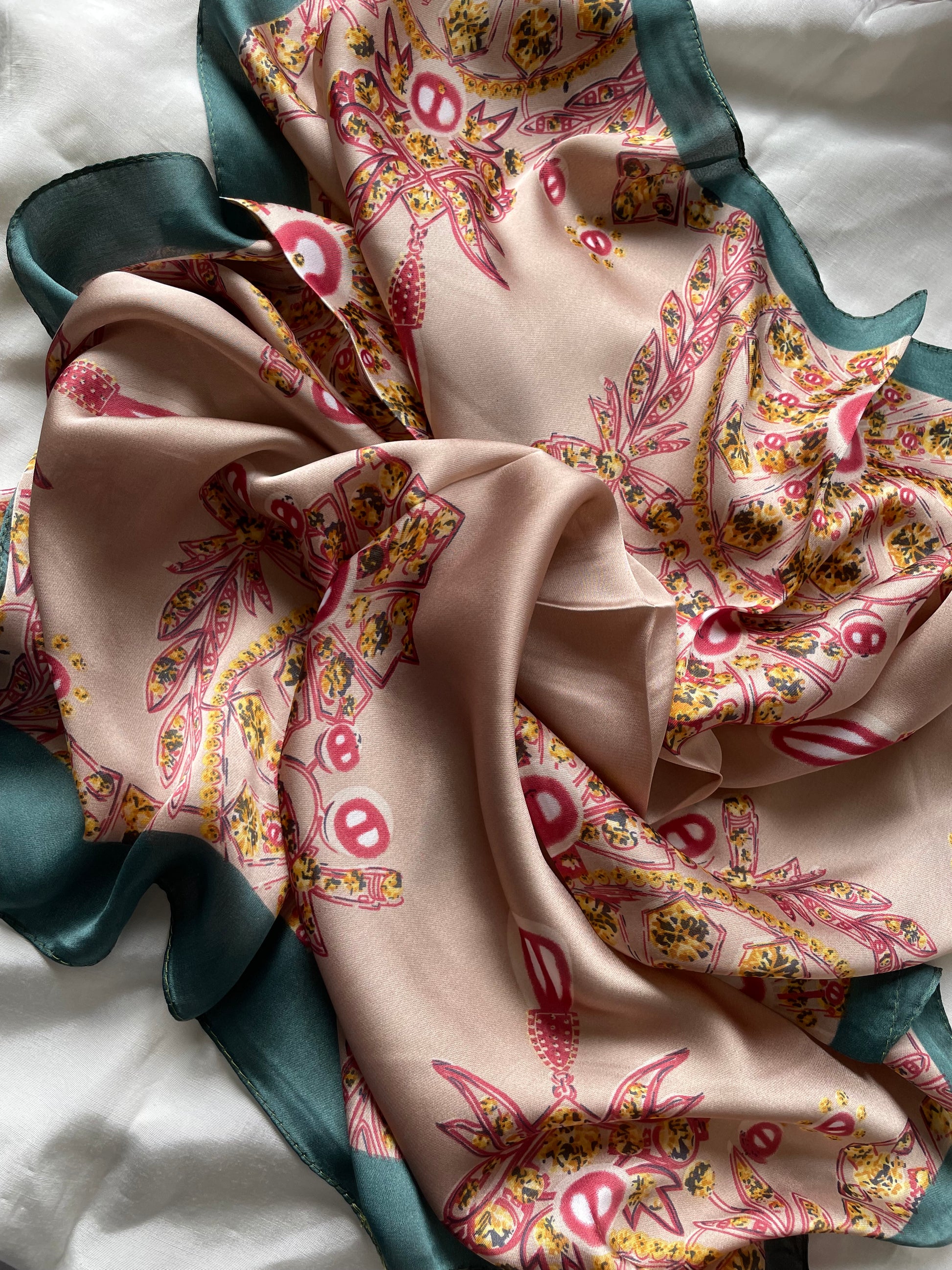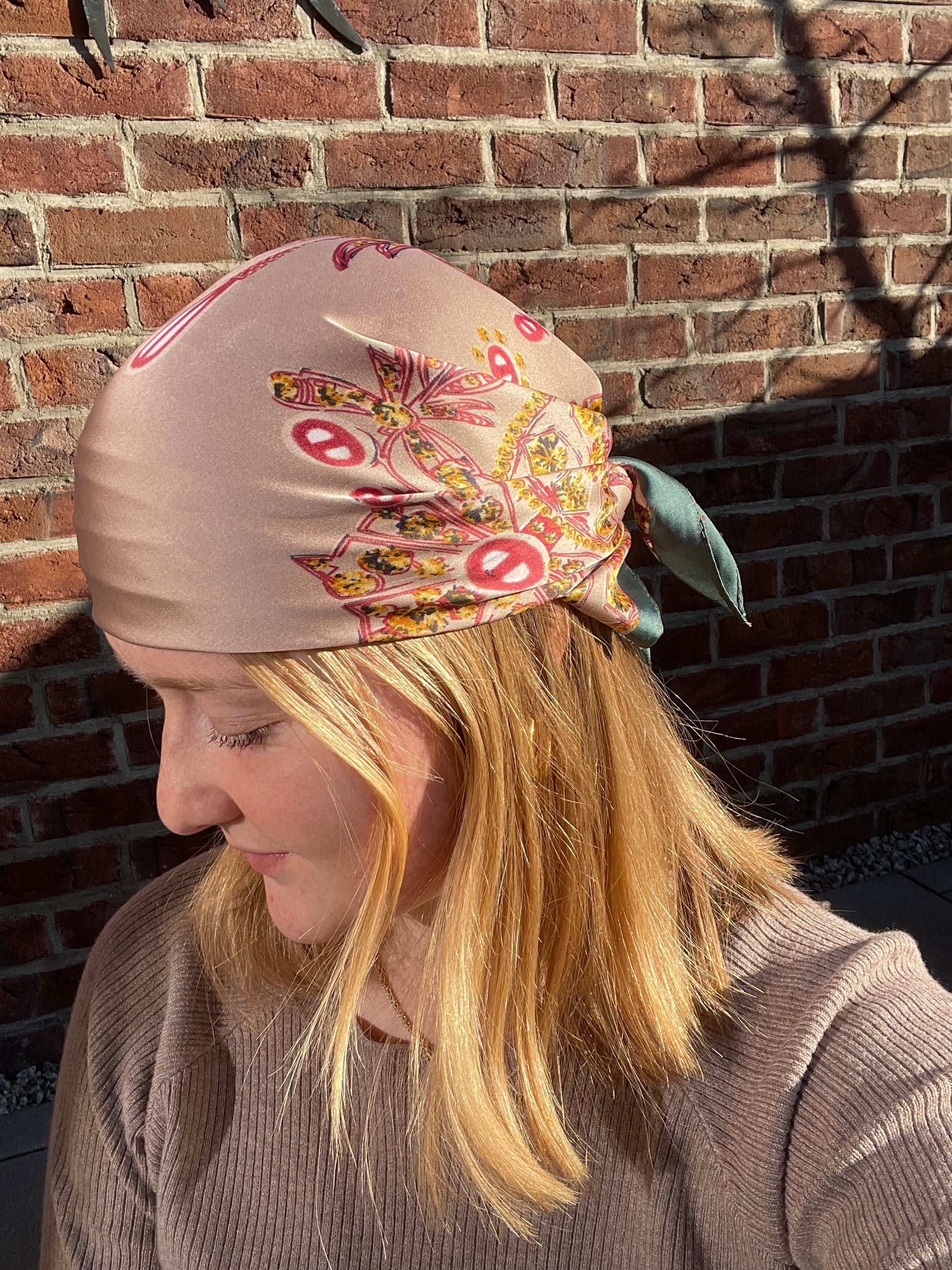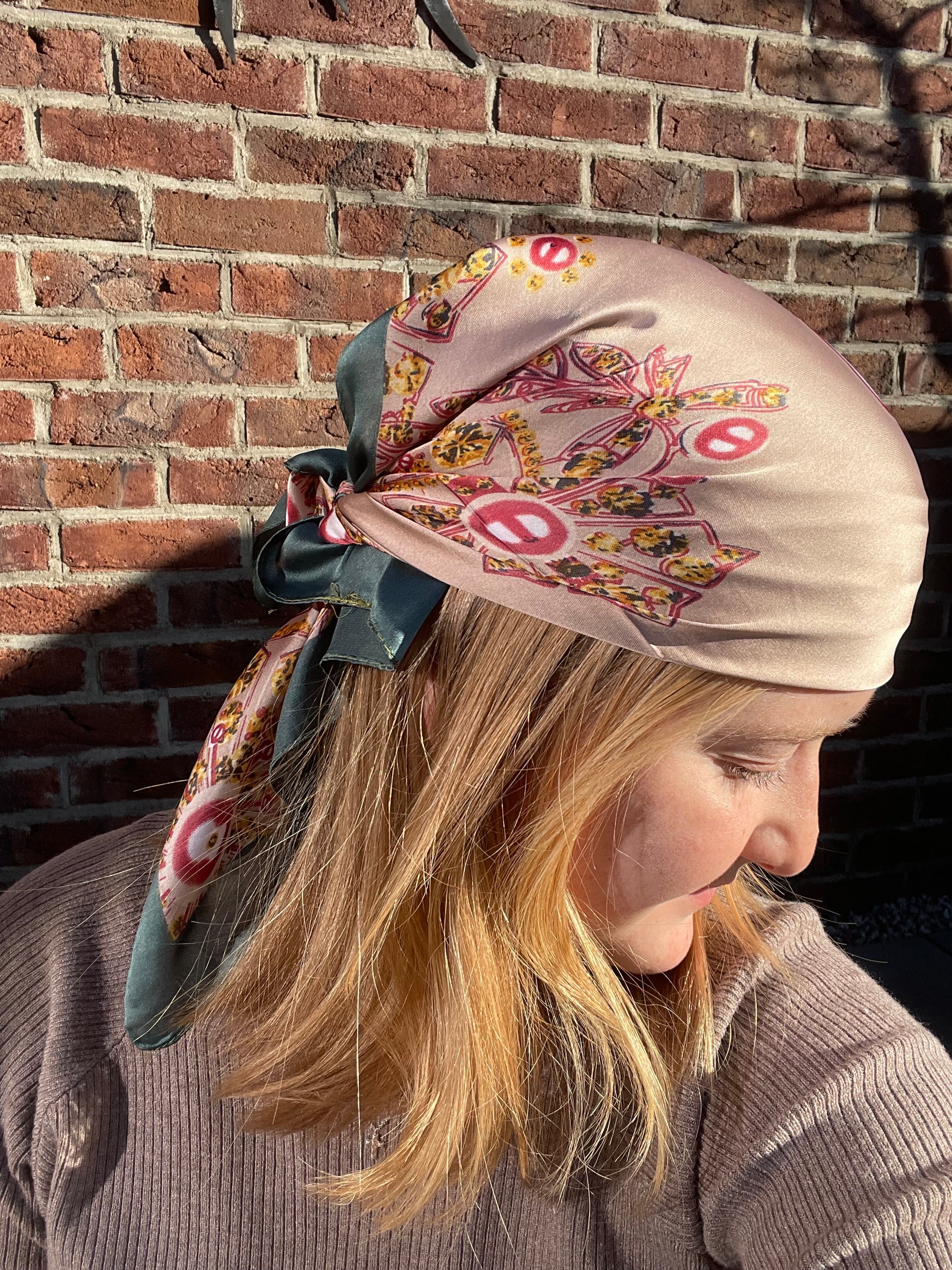 Kopftuch Satintuch Petrol Beige Orientalisch