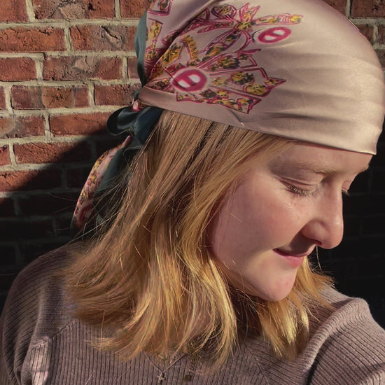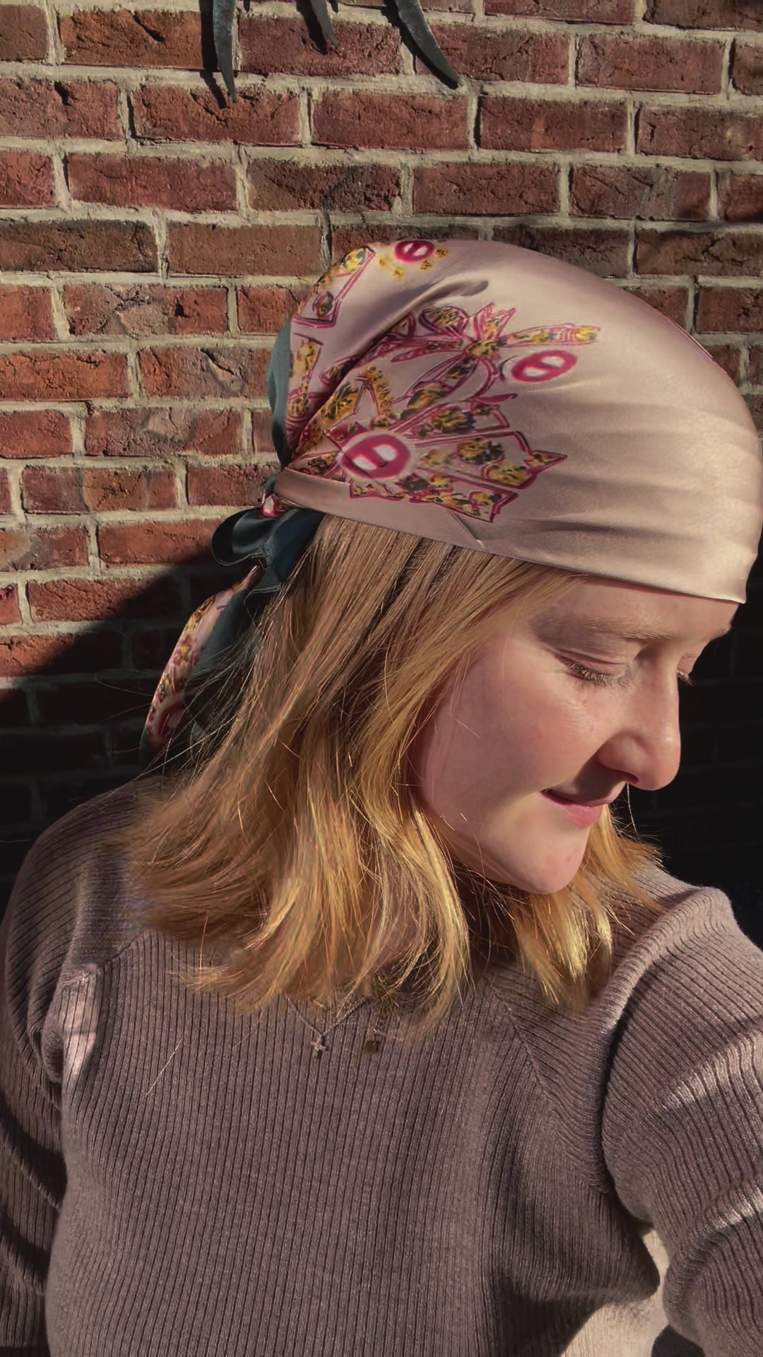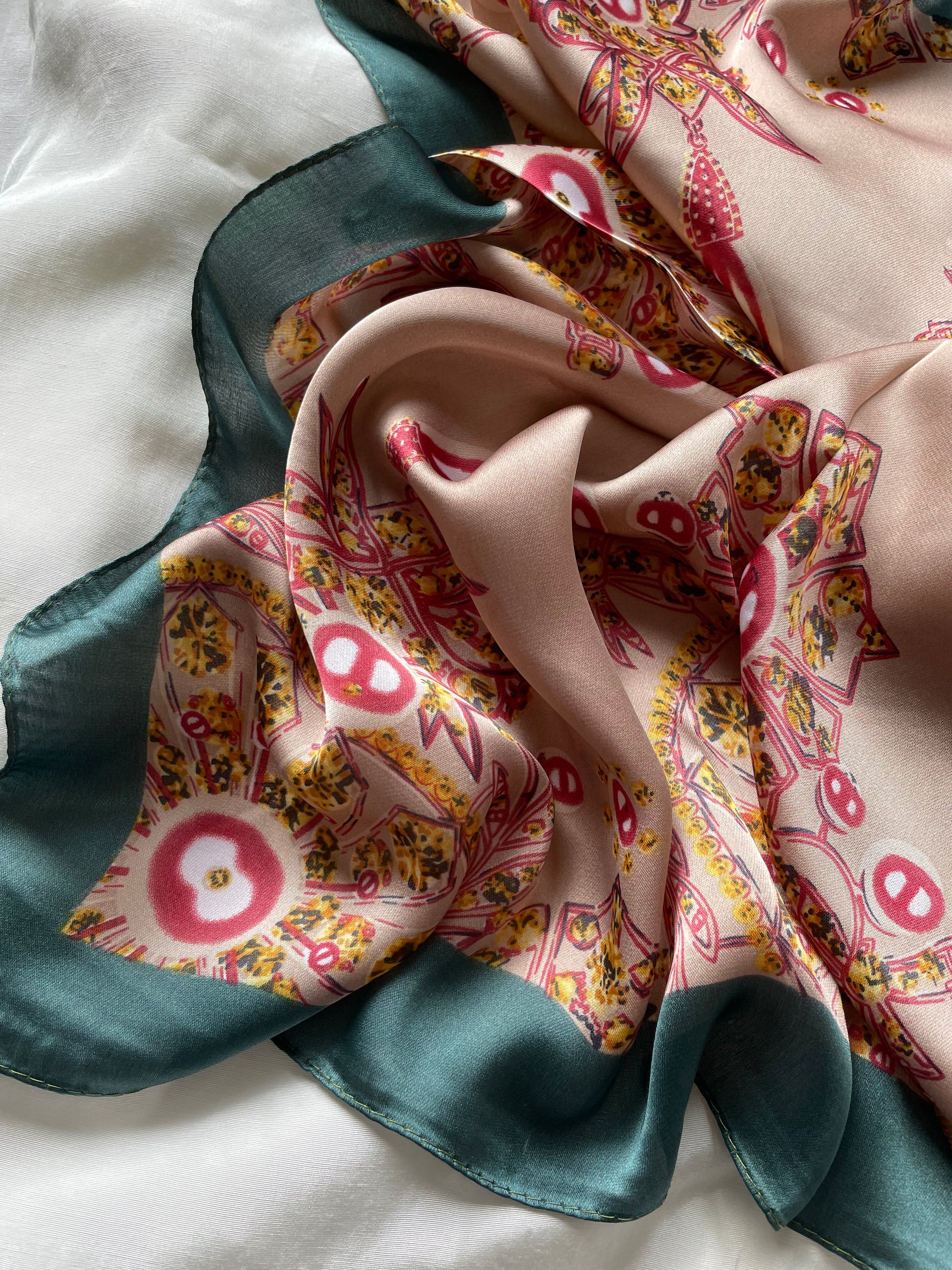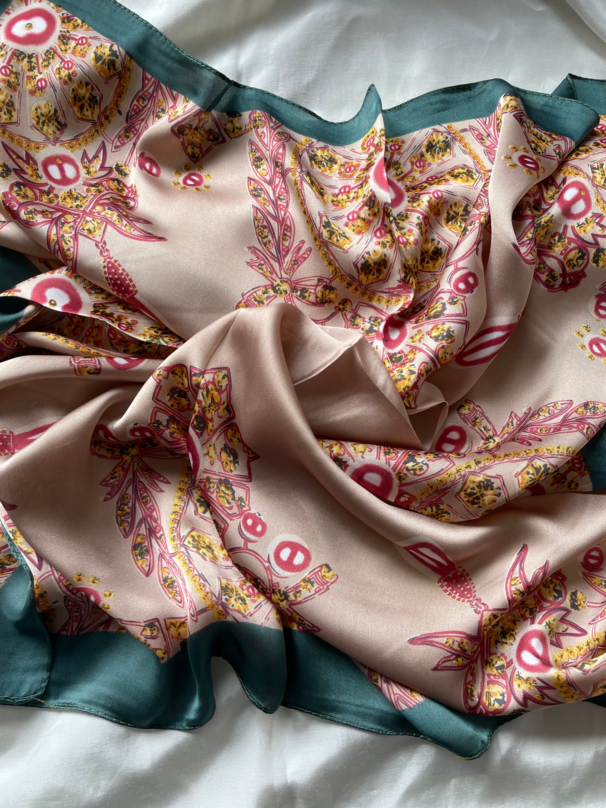 Kopftuch Satintuch Petrol Beige Orientalisch