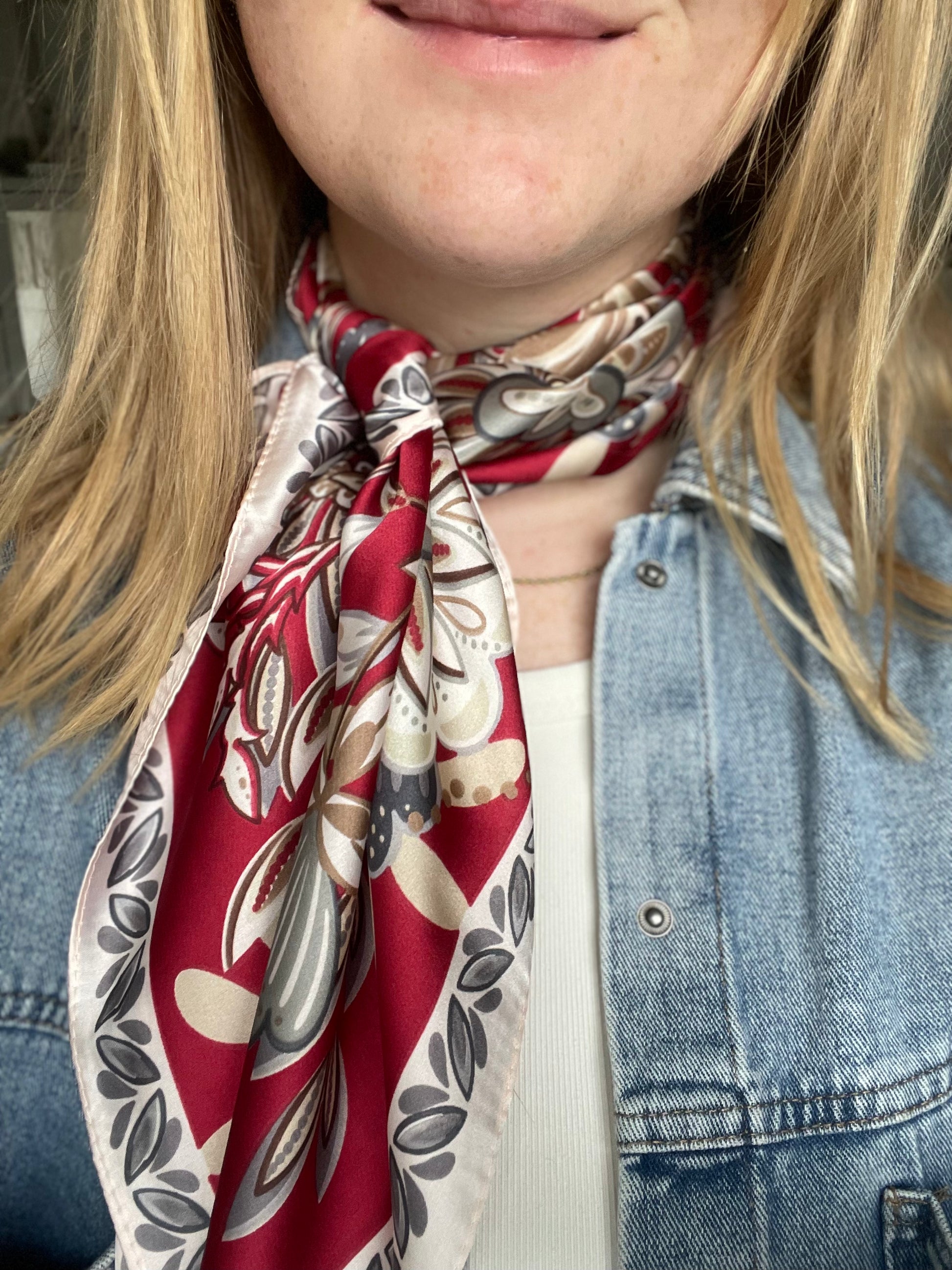 Schütze deine Haare stilvoll und sommerlich mit unserem dünnen Kopftuch aus Satin! Ob als Sonnenschutz oder für einen trendigen Look - dieses Rot Weiß Beige Satintuch ist dein perfektes Accessoire.