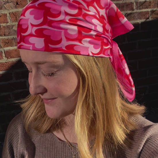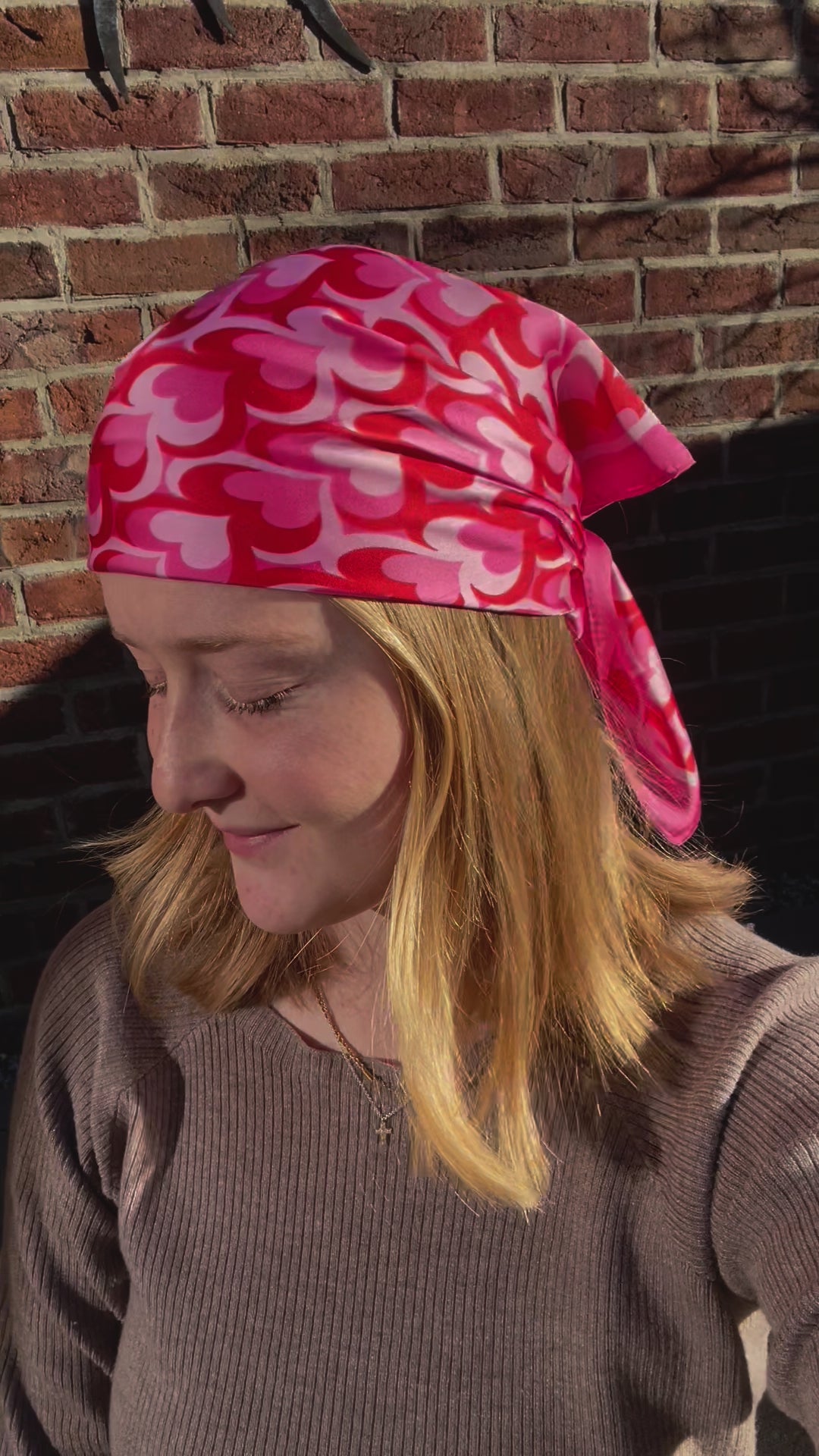 Schütze deine Haare stilvoll und sommerlich mit unserem dünnen Kopftuch aus Satin! Ob als Sonnenschutz oder für einen trendigen Look - dieses pinke Satintuch mit Herzmuster ist dein perfektes Accessoire.