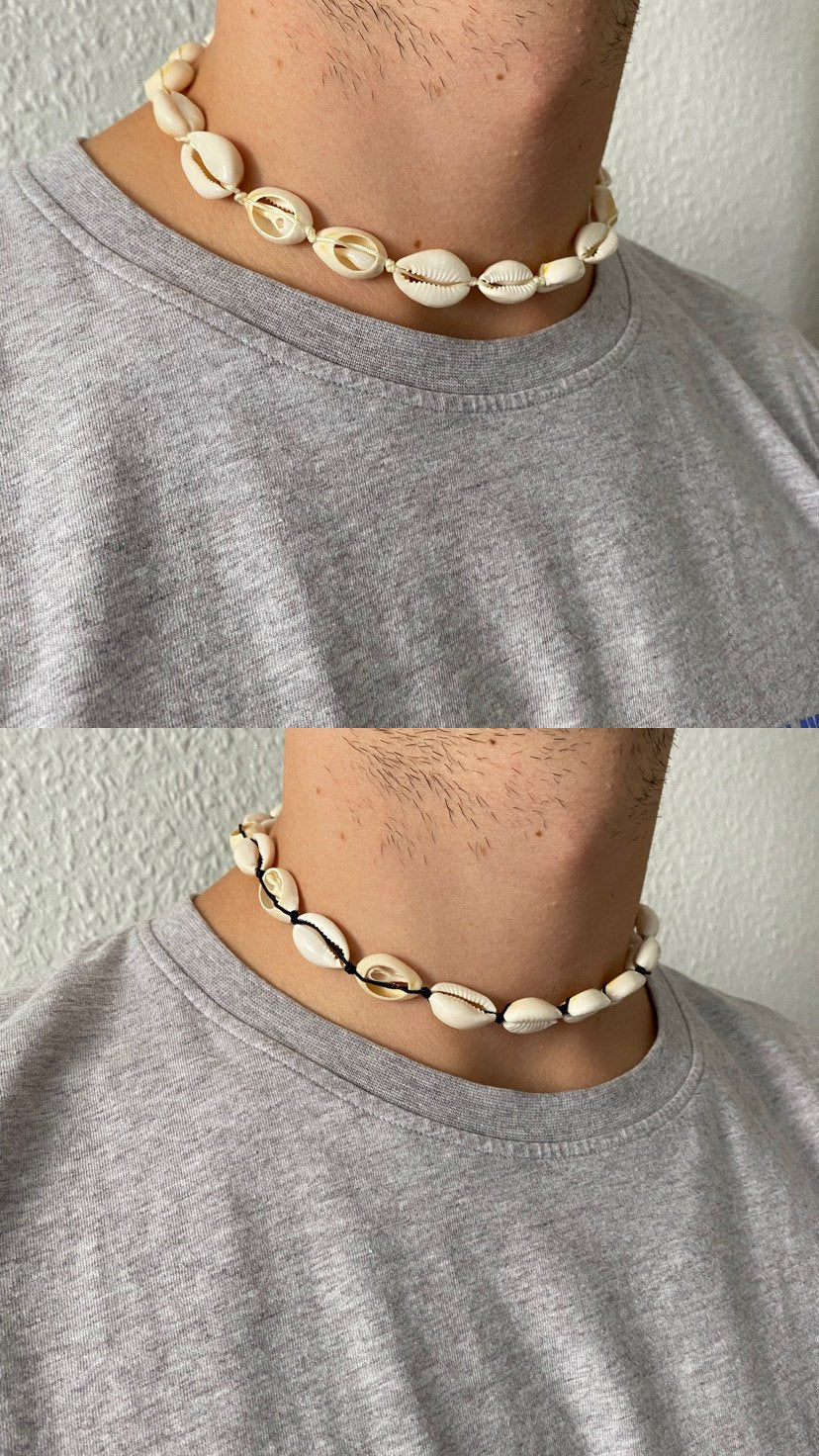 Hier siehst du meine Muschelhalskette in Beige und in Schwarz die wunderschön ist für die Sommertage. Beide Ketten haben eine Länge von 32cm. Sie sind aber verlängerbar auf 43cm mit dem Verlängerungsband. Sie sind Nickelfrei, aber nicht aus Edelstahl.