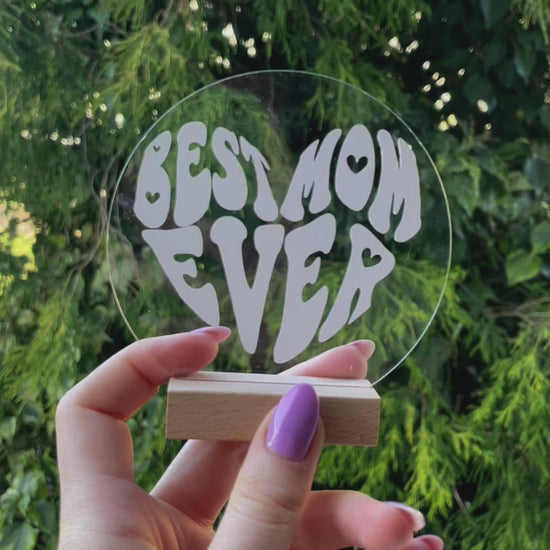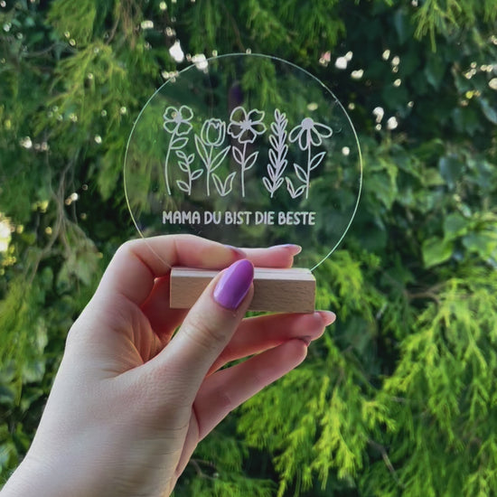 Überrasche deine Mama mit diesem schönen Aufsteller aus Acryl Glas! Du kannst wählen zwischen den Sprüchen "Best Moments Ever", "Mama du bist die Beste" oder "Mama ♥". Garantiert wird deiner Mama damit ein Lächeln ins Gesicht gezaubert. Einfaches aufstellen mit der Holzhalterung, ermöglicht ein wunderschönes Dekoelement, auf der Arbeit oder Zuhause.