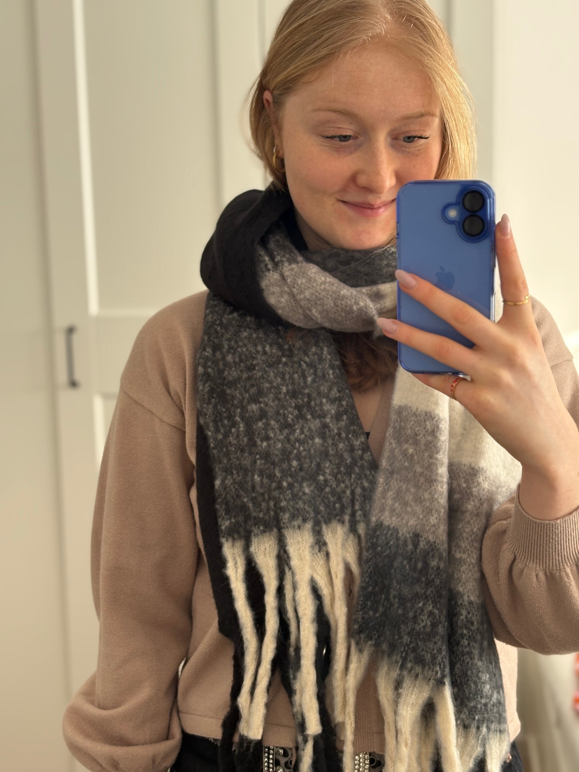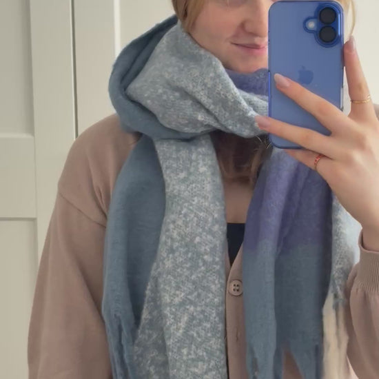Der Schal "Square" ist der perfekten Begleiter für Herbst und Winter, wenn dein Outfit ein Highlight haben soll. Erhältlich in Blau oder in Schwarz.