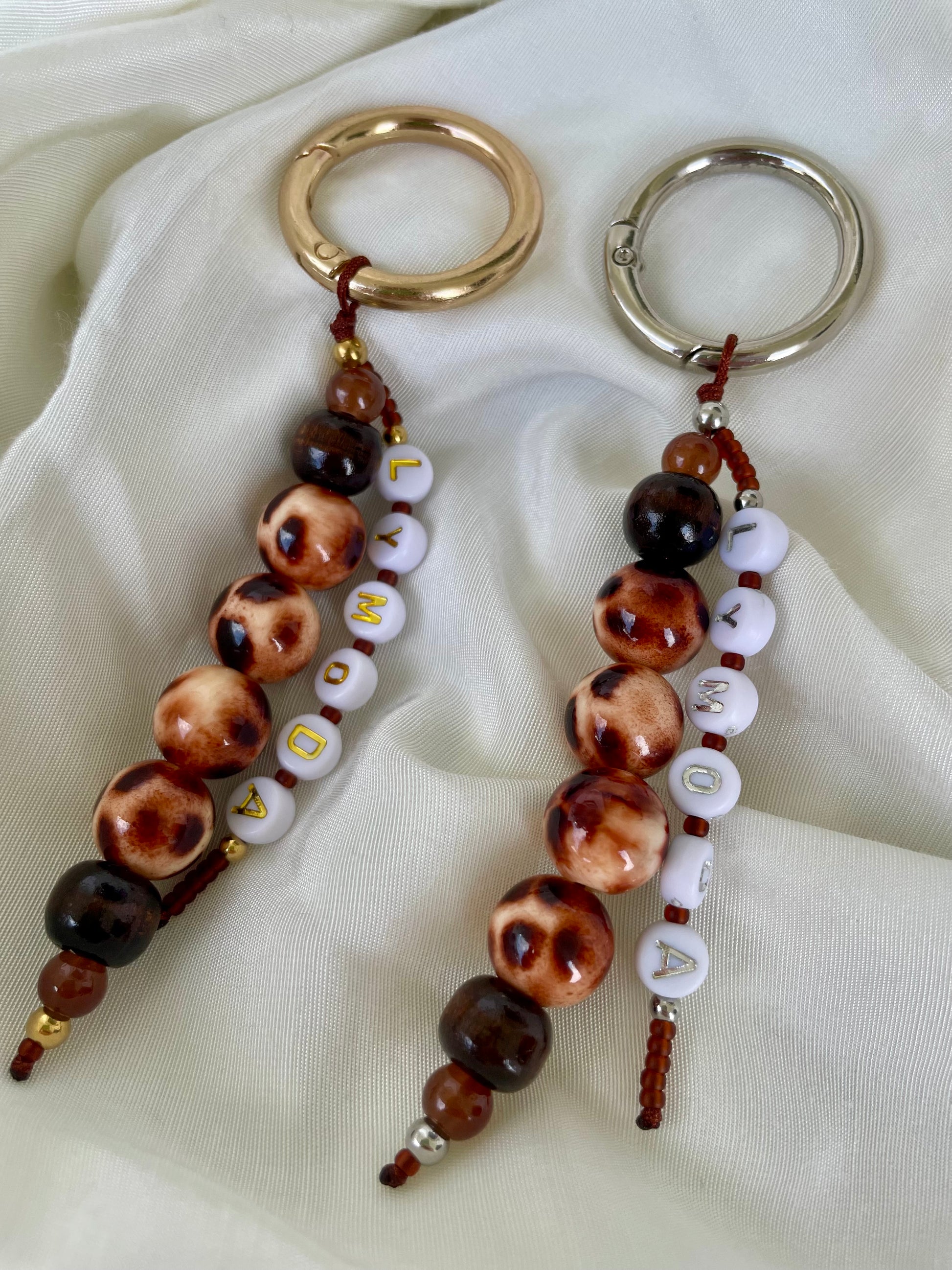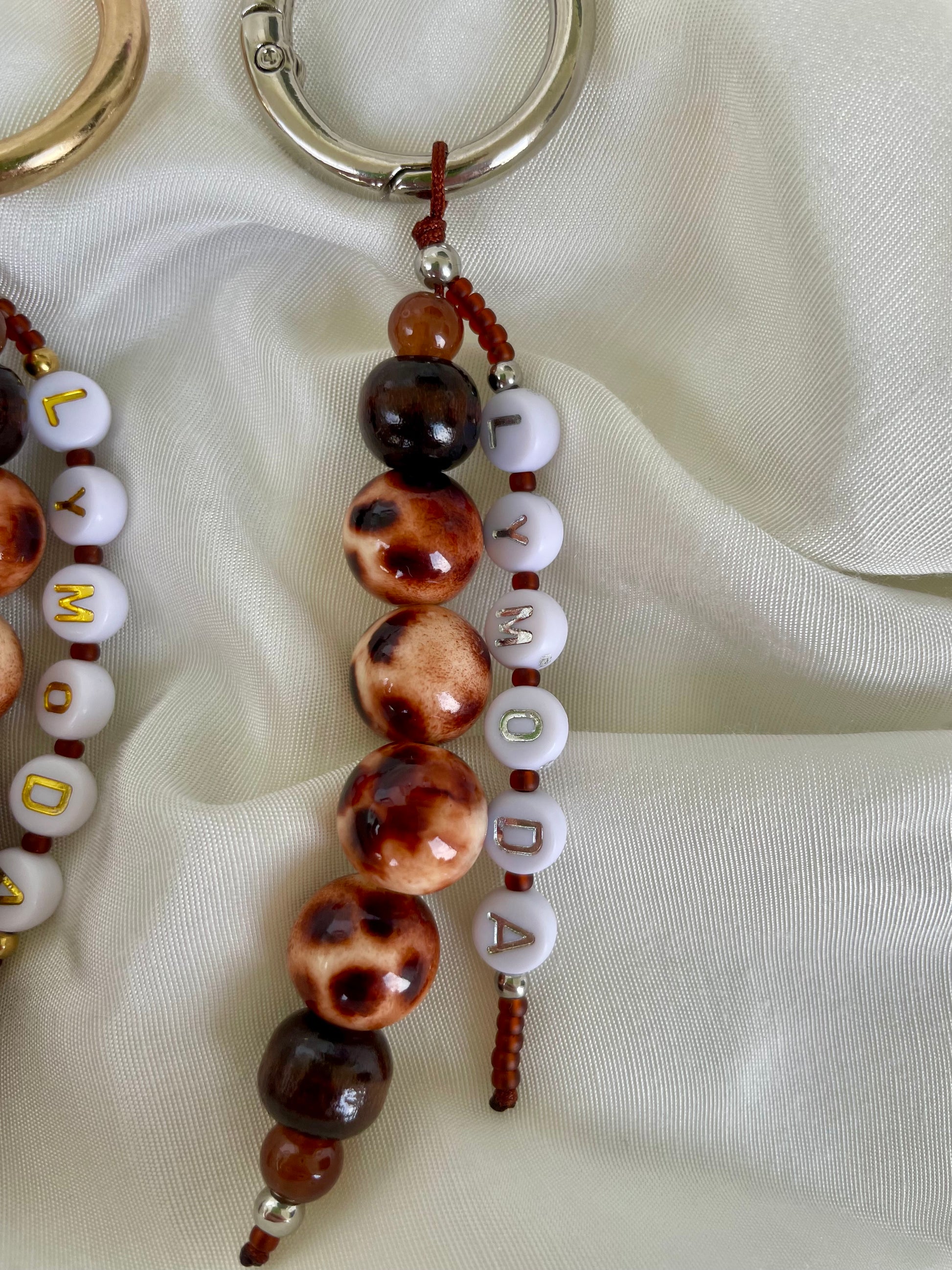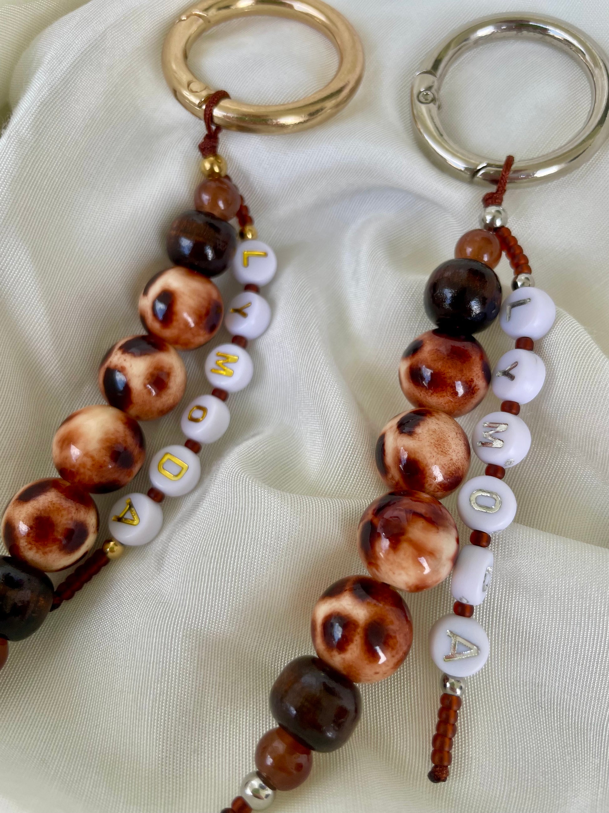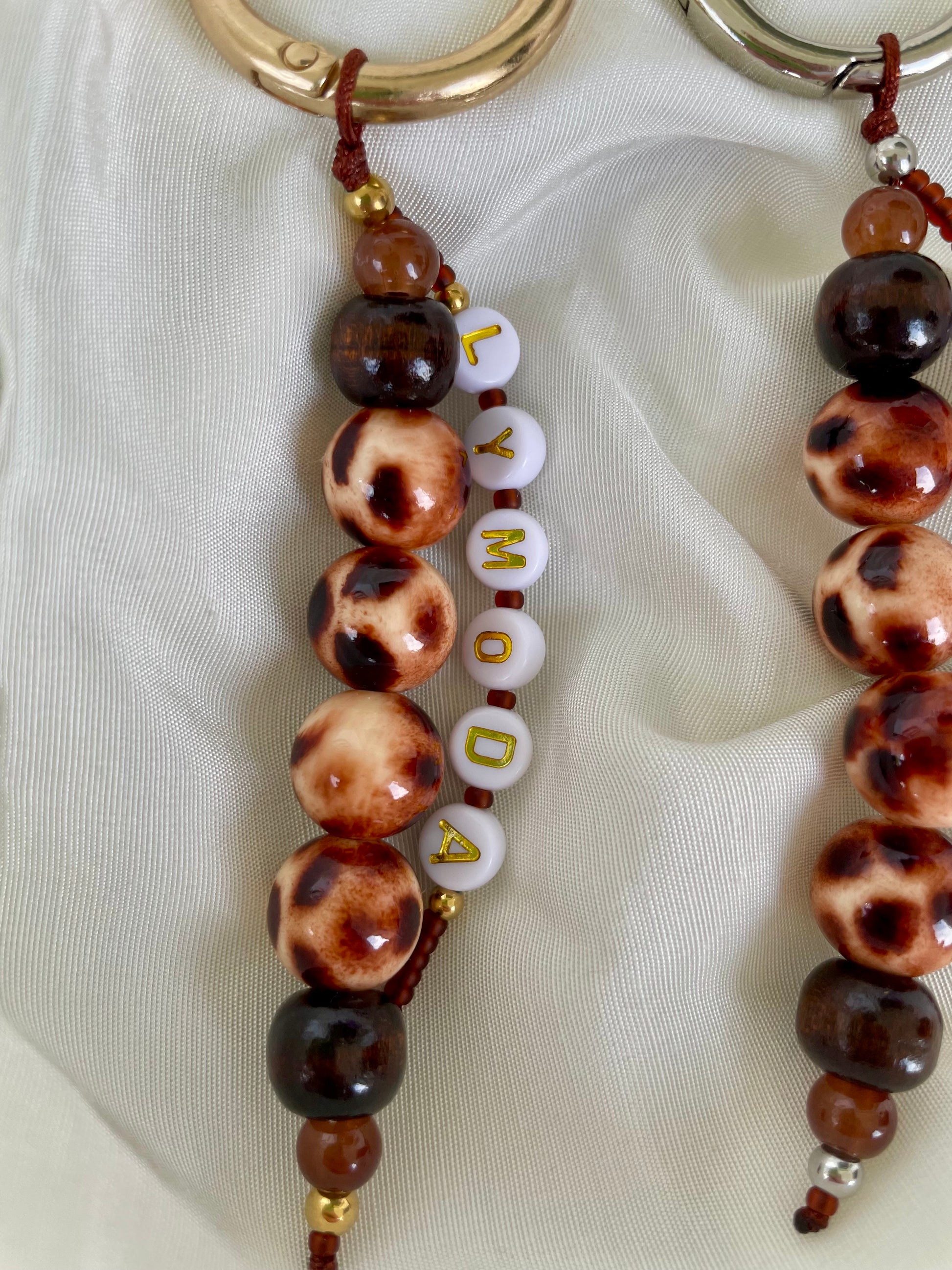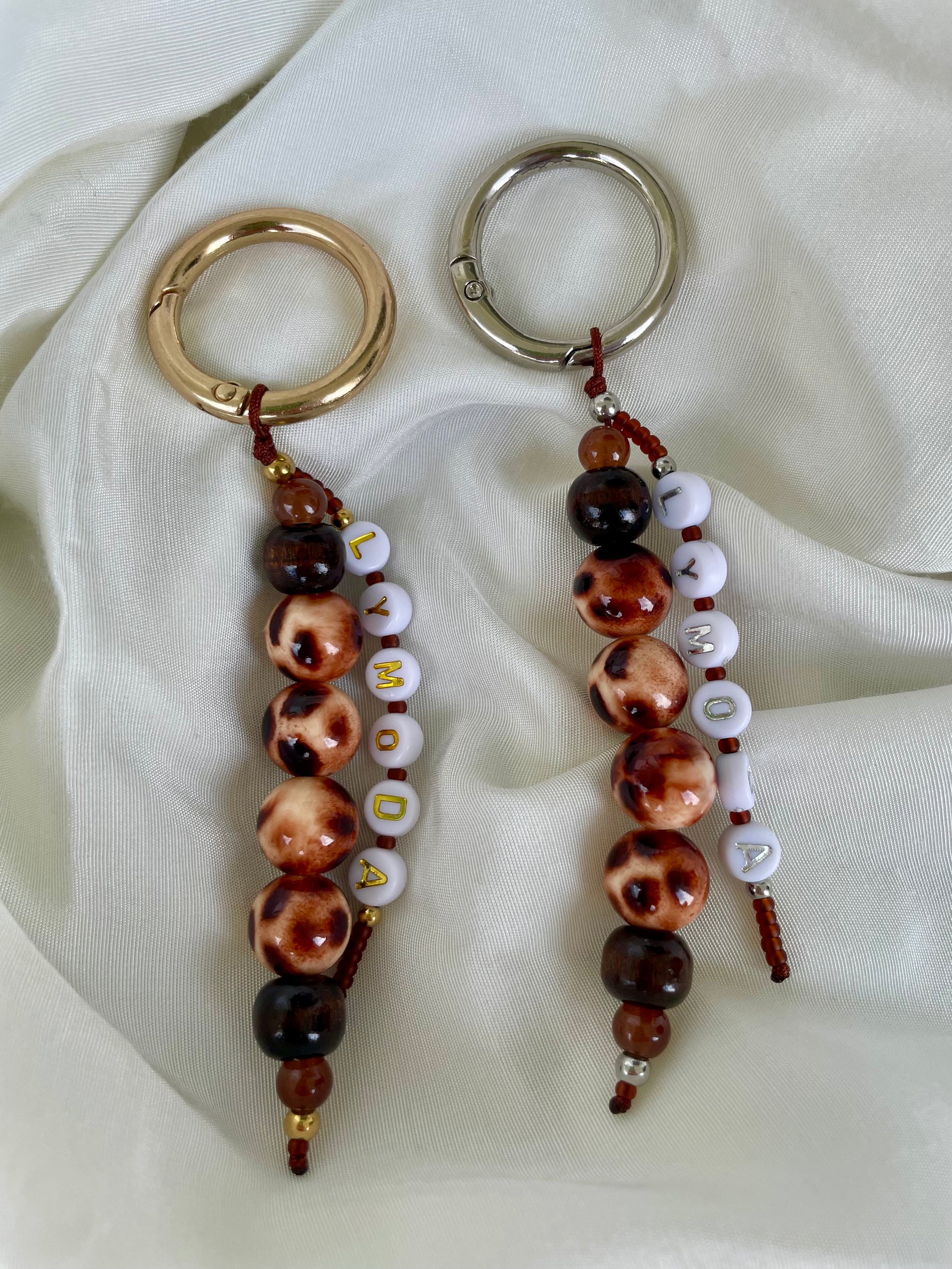 Hier seht den handgemachten Lymoda Leo-Schlüsselanhänger mit wunderschönen Leo-Perlen.