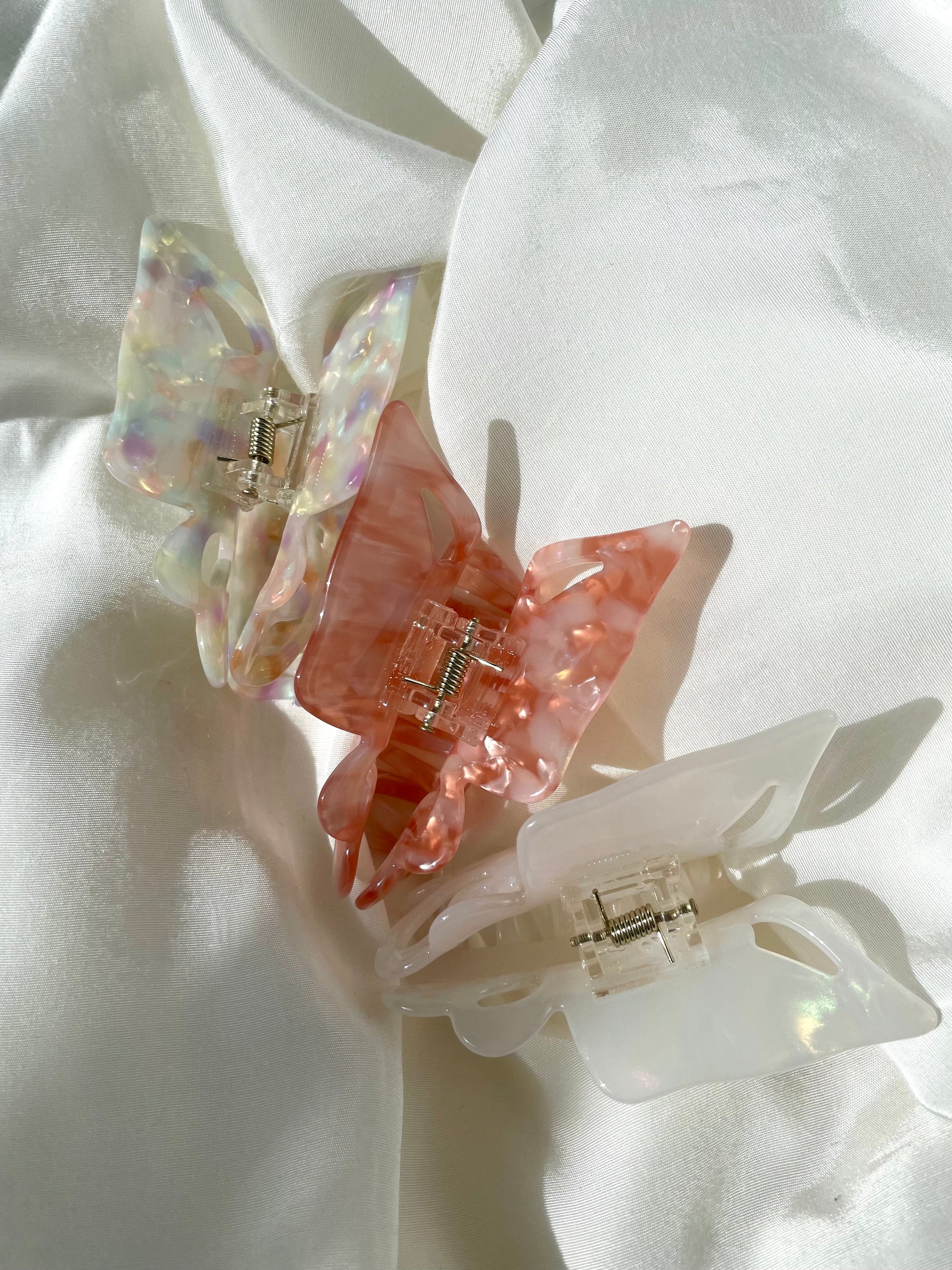 Hier seht ihr meine wunderschönen Schmetterling Haarspangen in drei verschiedenen Farben. Die Spangen sind auch für dicke Haare geeignet und sind aus einer super Qualität. Sie sind ein echter Hingucker, denn nicht jeder trägt einen so schönen Schmetterling im Haar :)