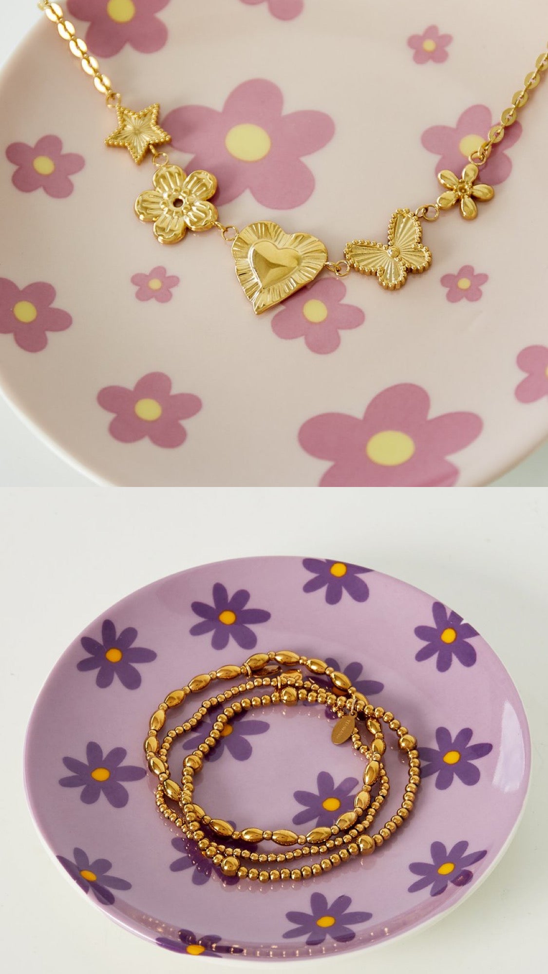 Bewahren deine Lieblingsschmuckstücke in dieser entzückenden, runden Schmuckschale mit hübschem Blumenmuster aus Keramik auf. Eine charmante Ergänzung für dein Schlafzimmer, Badezimmer oder Schminktisch. Ordnung und Stil in einem!