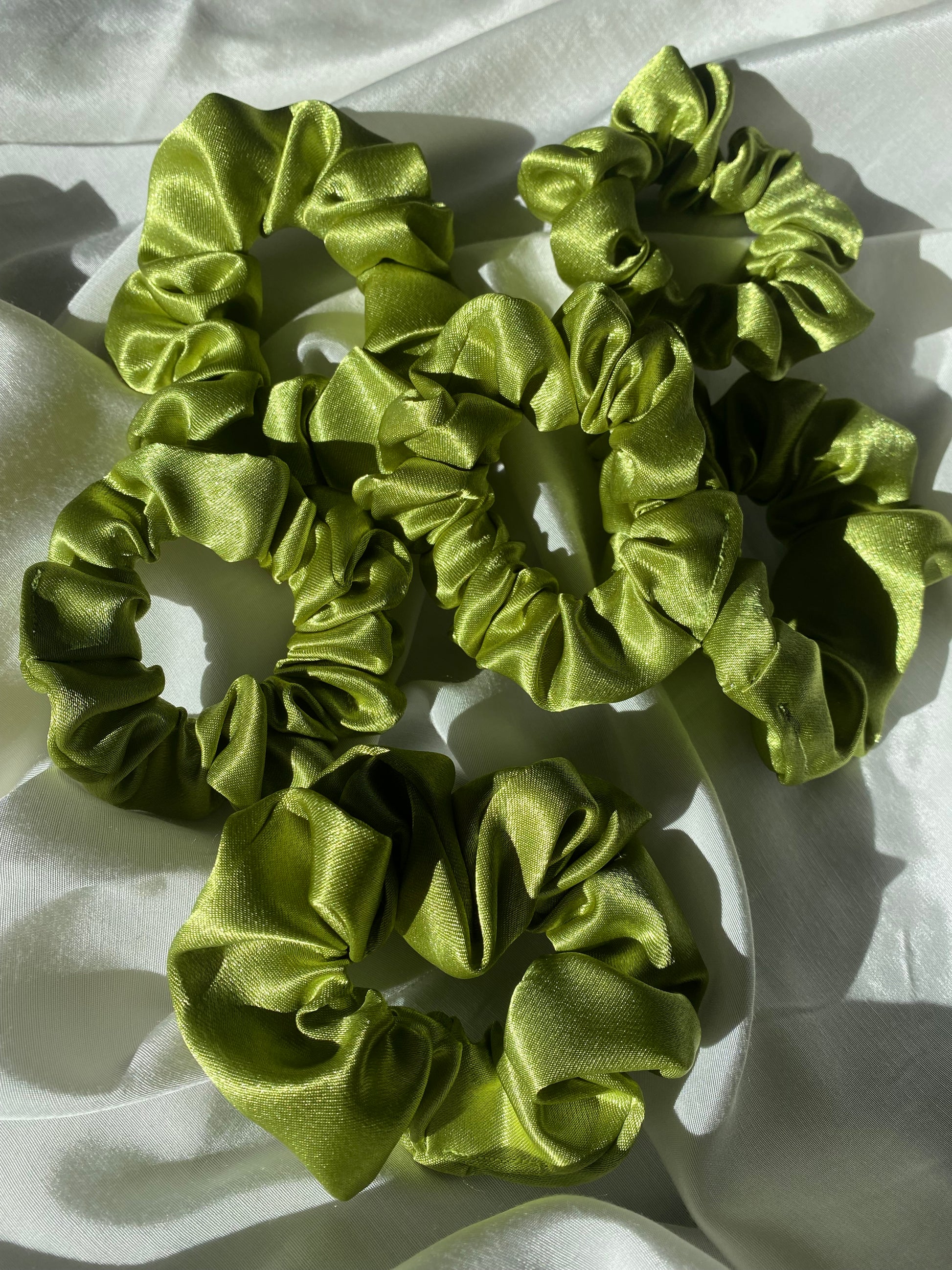 Hier seht ihr mein handgemachtes Scrunchie in Lila und Grün aus einem Satin Stoff. Das Scrunchie findet ihr in zwei verschiedenen Größen. Der Stoff ist wirklich super super weich, und somit sehr schonend für die Haare.