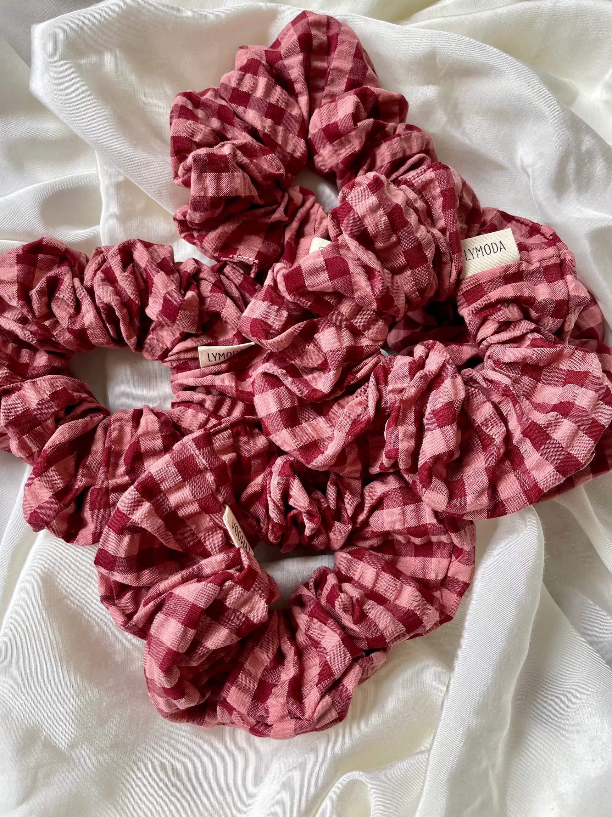 Hier seht ihr mein handgemachtes Scrunchie in einem karierten Seesucker Stoff. Das Scrunchie findet ihr in zwei verschiedenen Größen (Klein und XXL). Der Stoff ist wirklich super super weich, und somit sehr schonend für die Haare.