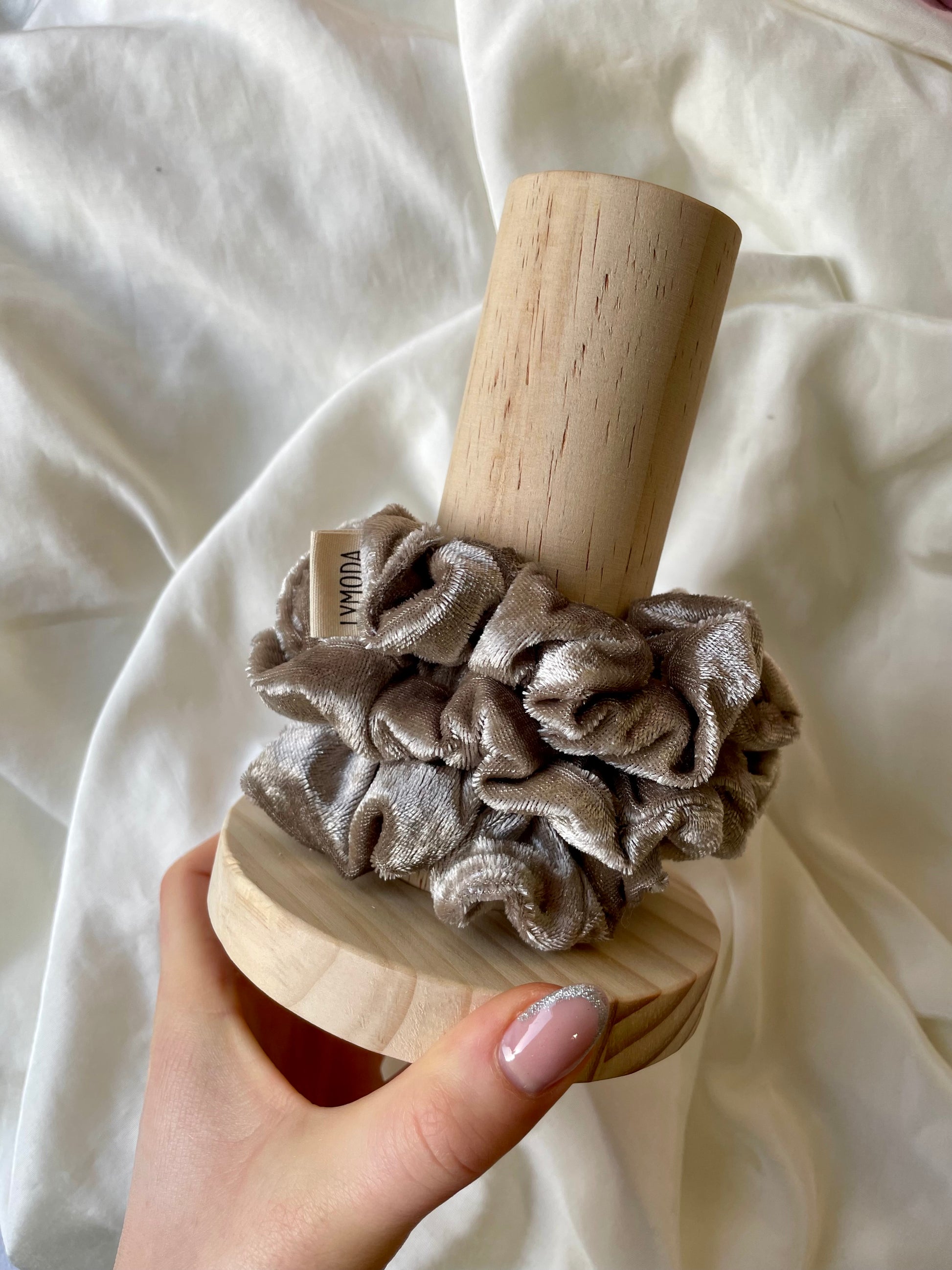 Lagere deine Scrunchies mit deinem Scrunchie Halter! Der Halter bietet Platz für über 10 Scrunchies und ist aus hochwertigem Holz und mit „LYMODA“ verziert. Hält deine Haaraccessoires organisiert und stilvoll.